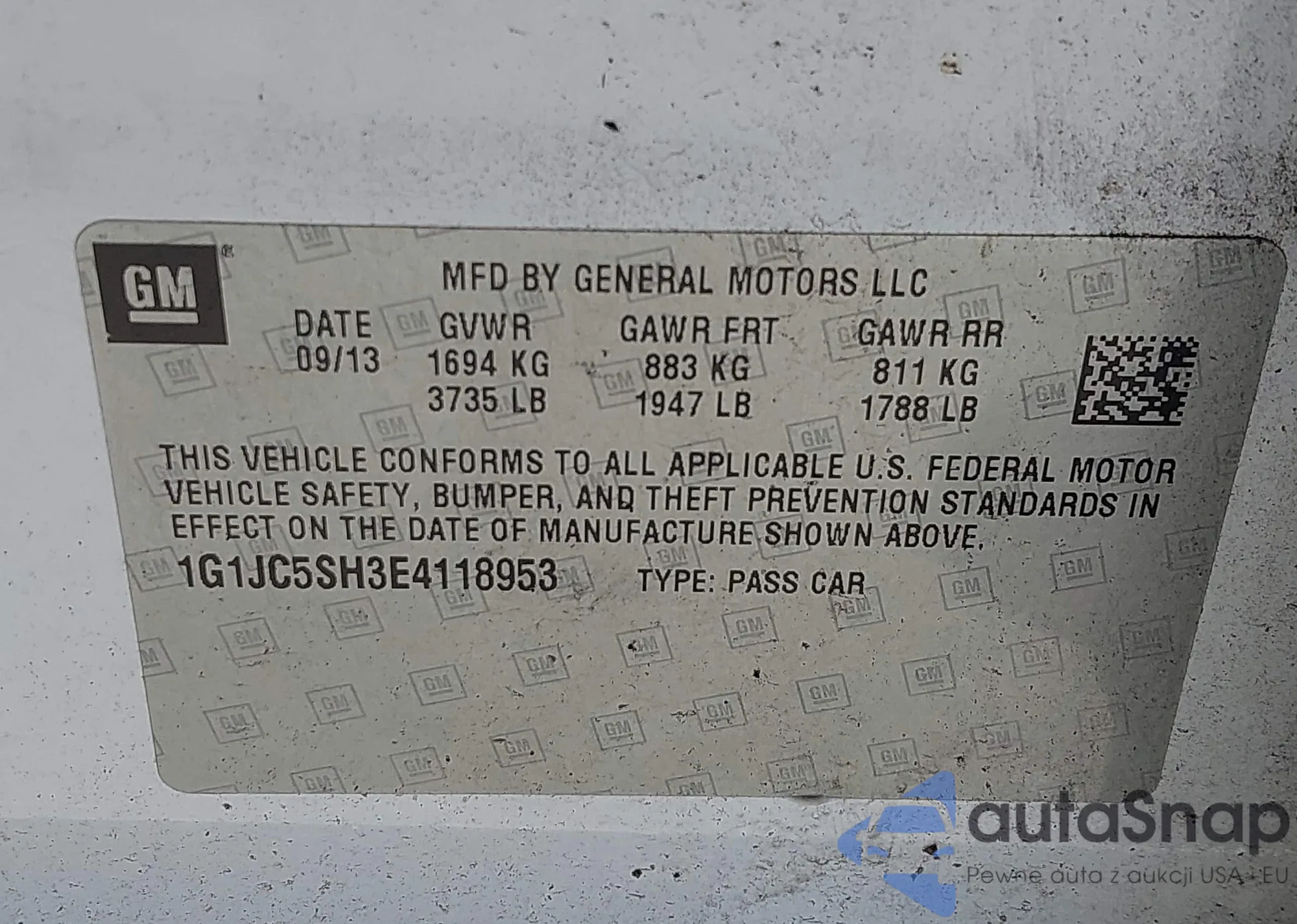 LOT: 42494092 VIN: 1G1JC5SH3E4118953