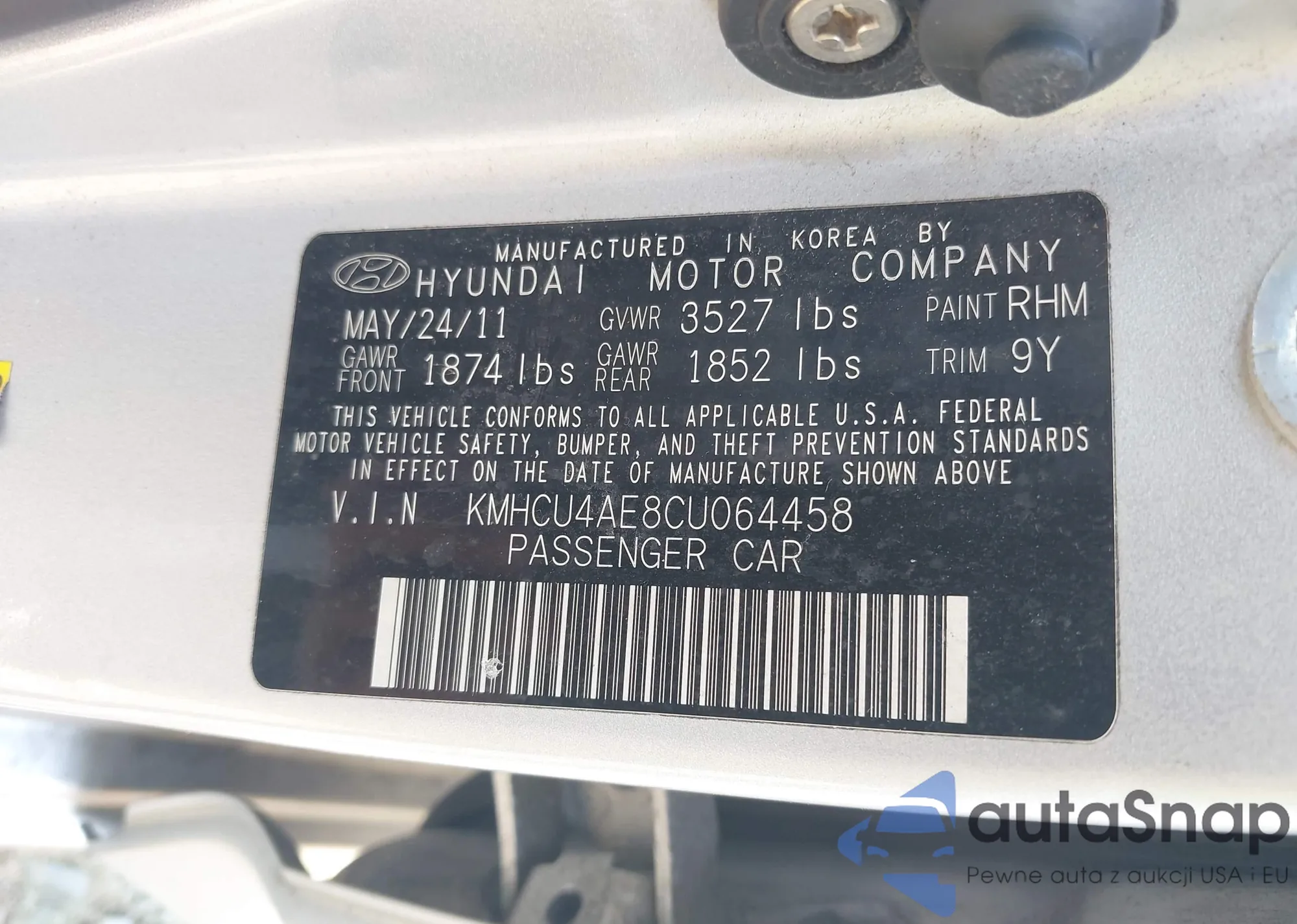 • VIN KMHCU4AE8CU064458