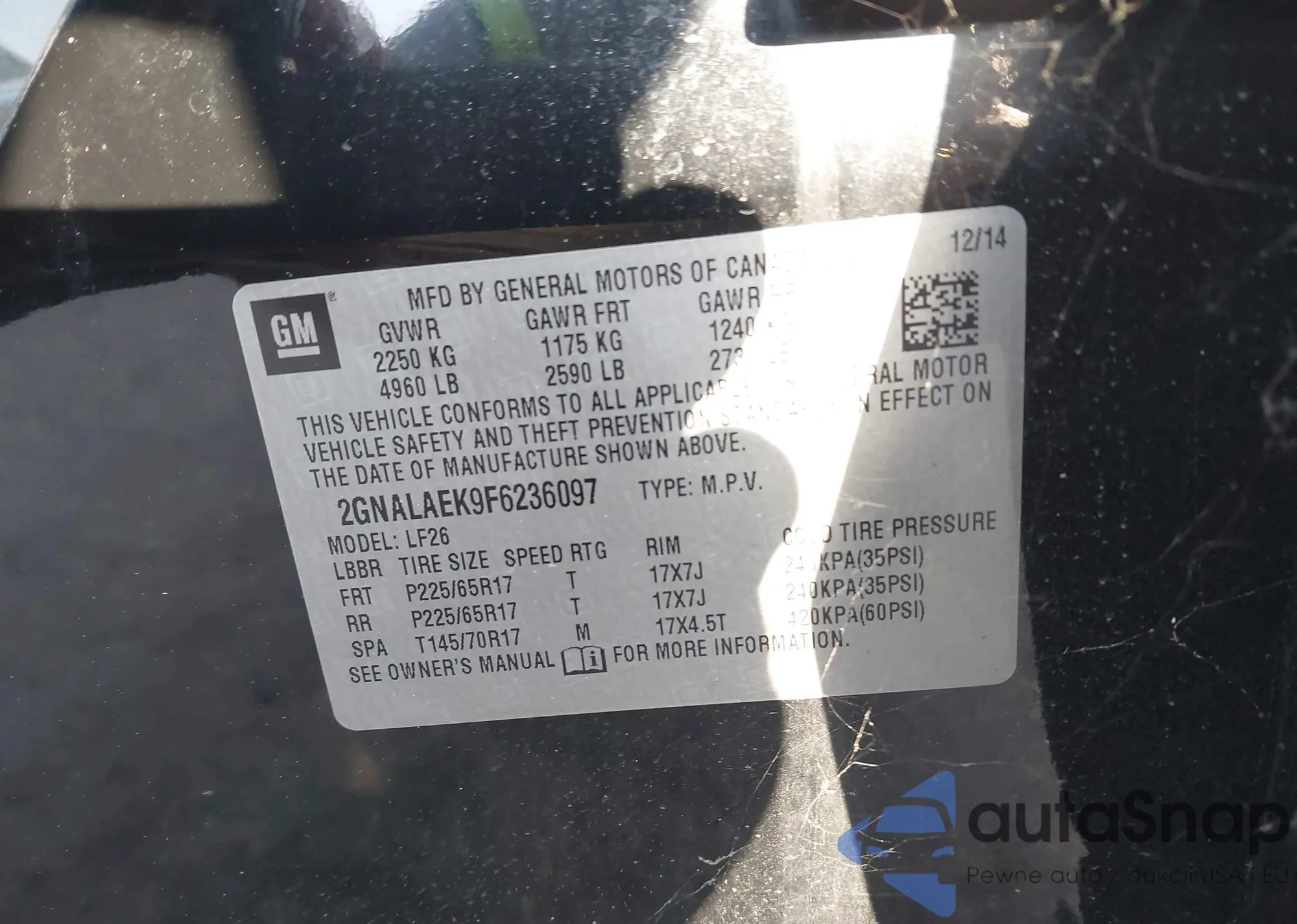 • VIN 2GNALAEK9F6236097