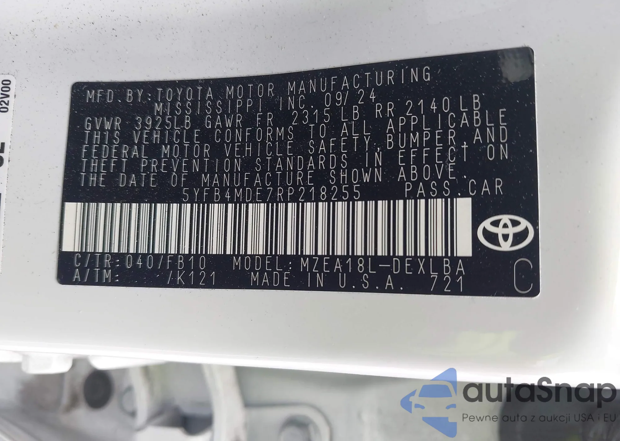 LOT: 41165547 VIN: 2T3W1RFV5MW141050