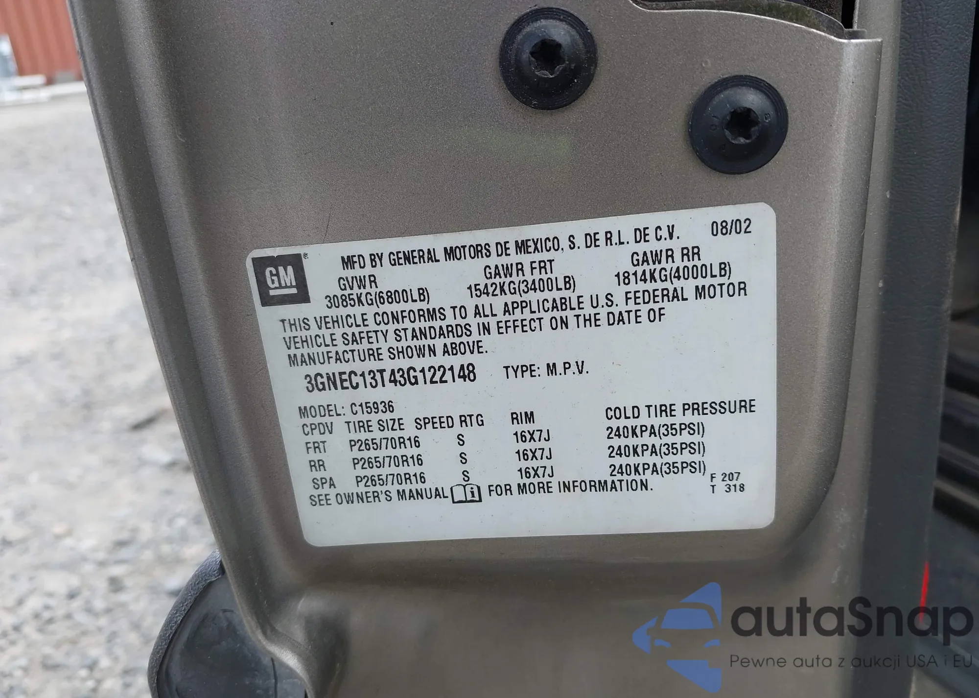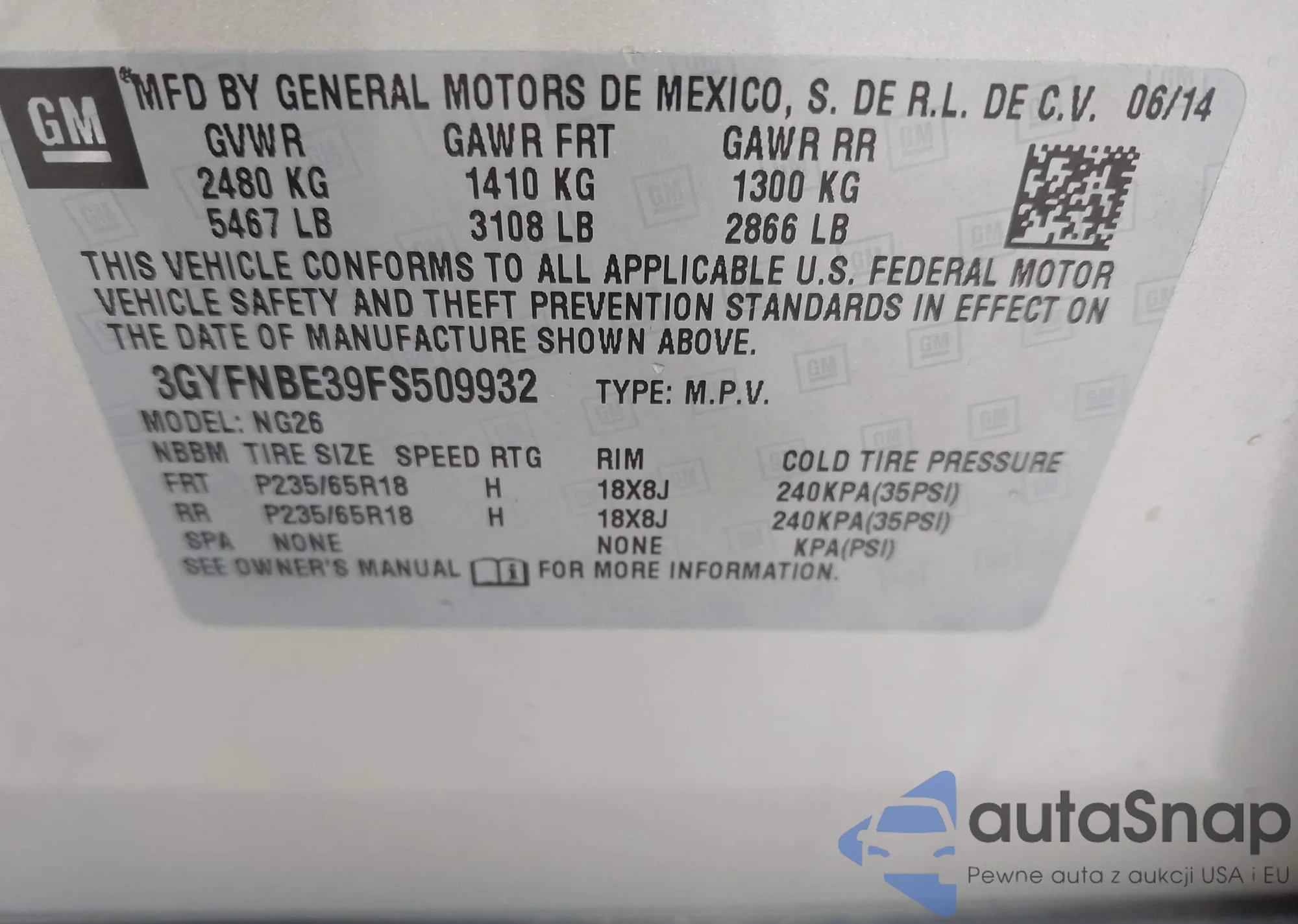 LOT: 42674928 VIN: 3GYFNBE39FS509932