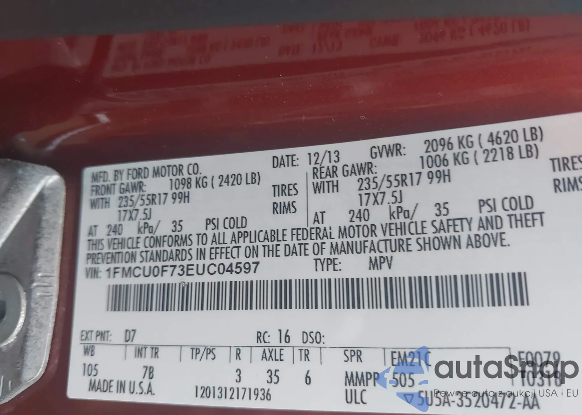 LOT: 41919038 VIN: KL4CJESB7EB781532
