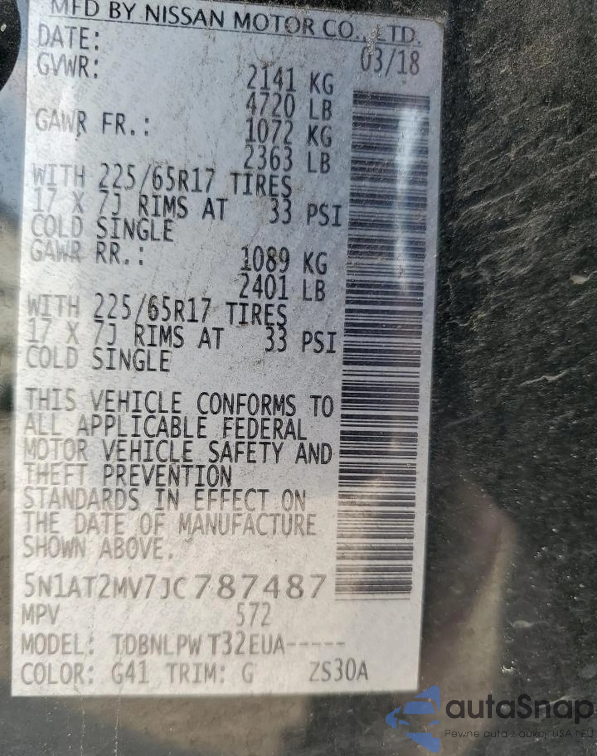 LOT: 58568535 VIN: 5N1AT2MV7JC787487