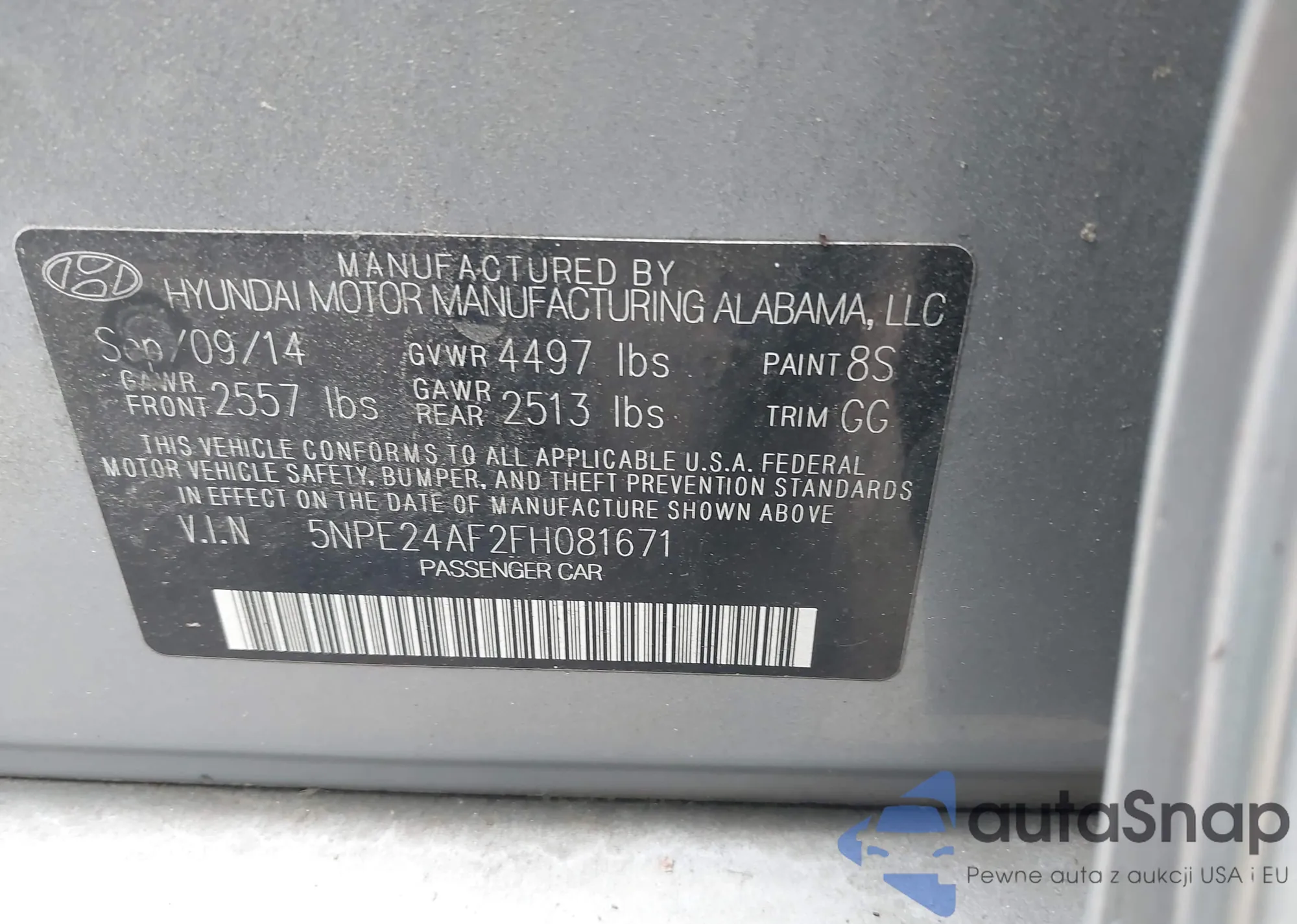 • VIN 1C4AJWAG9FL747443