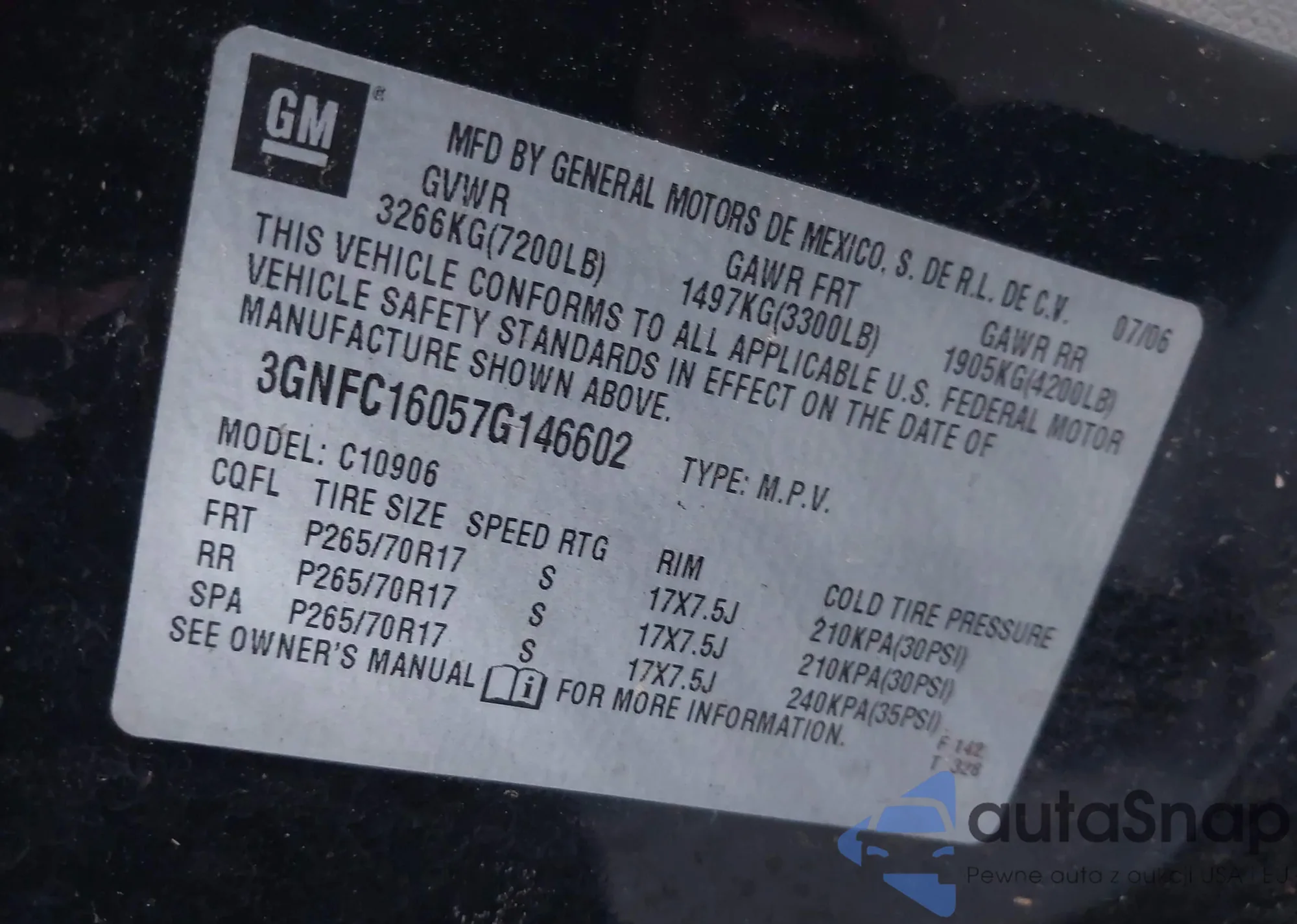 • VIN 5TFCZ5AN2GX007351