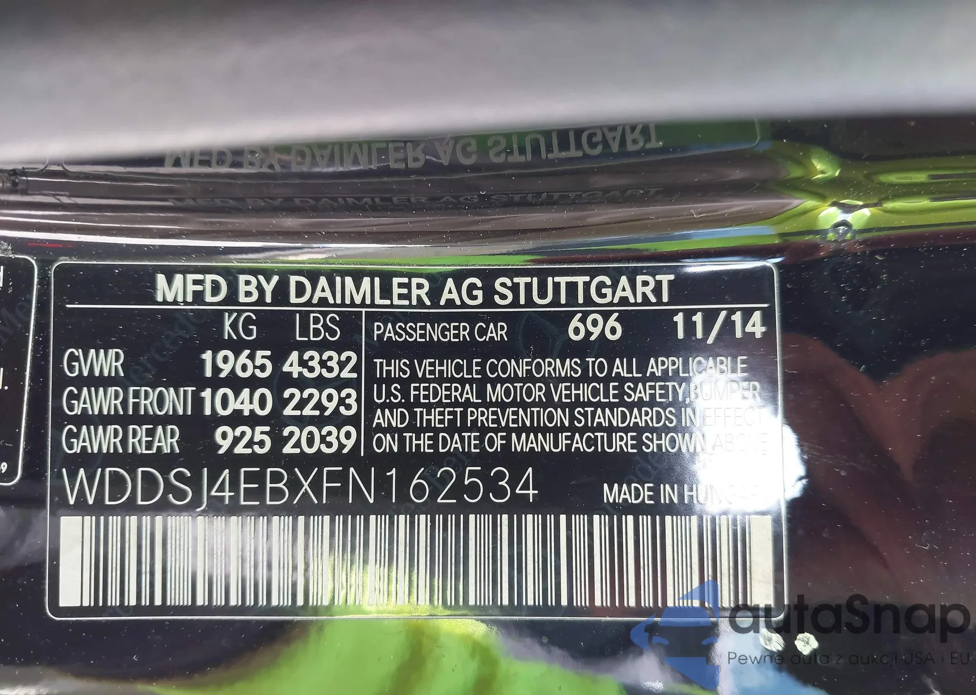 • VIN WDDSJ4EBXFN162534