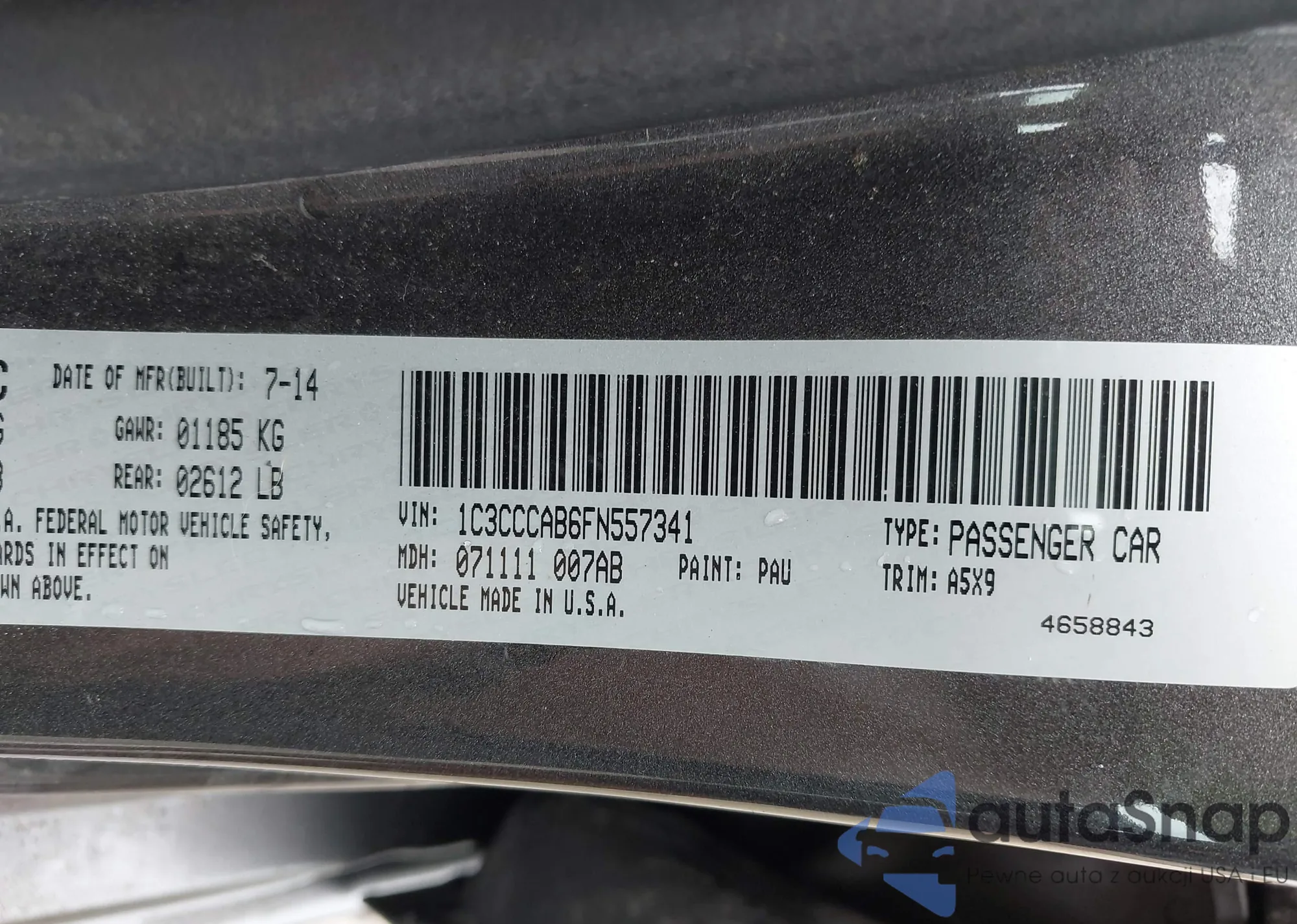 LOT: 42585791 VIN: 1C3CCCAB6FN557341