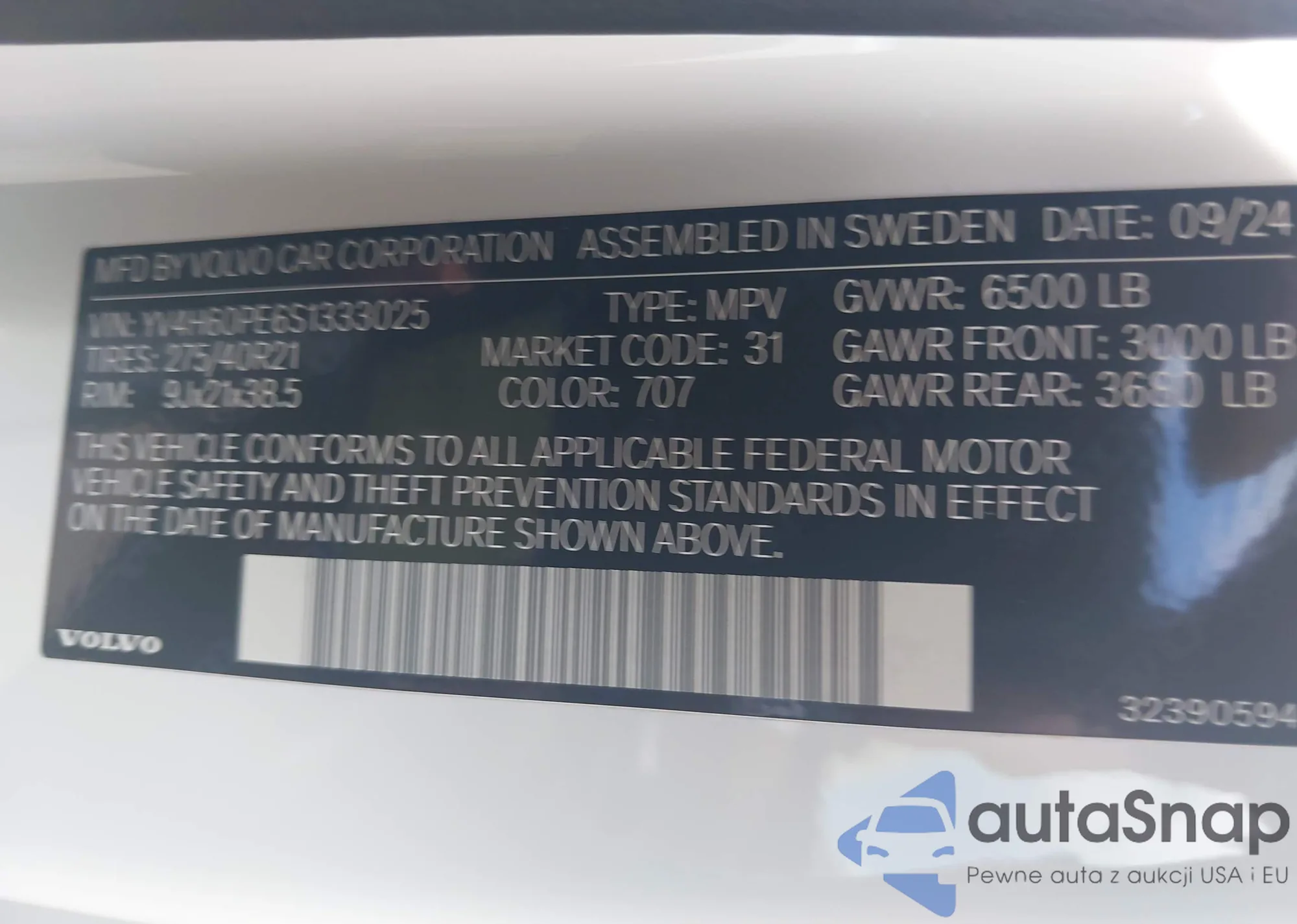 LOT: 42635713 VIN: YV4H60PE6S1333025