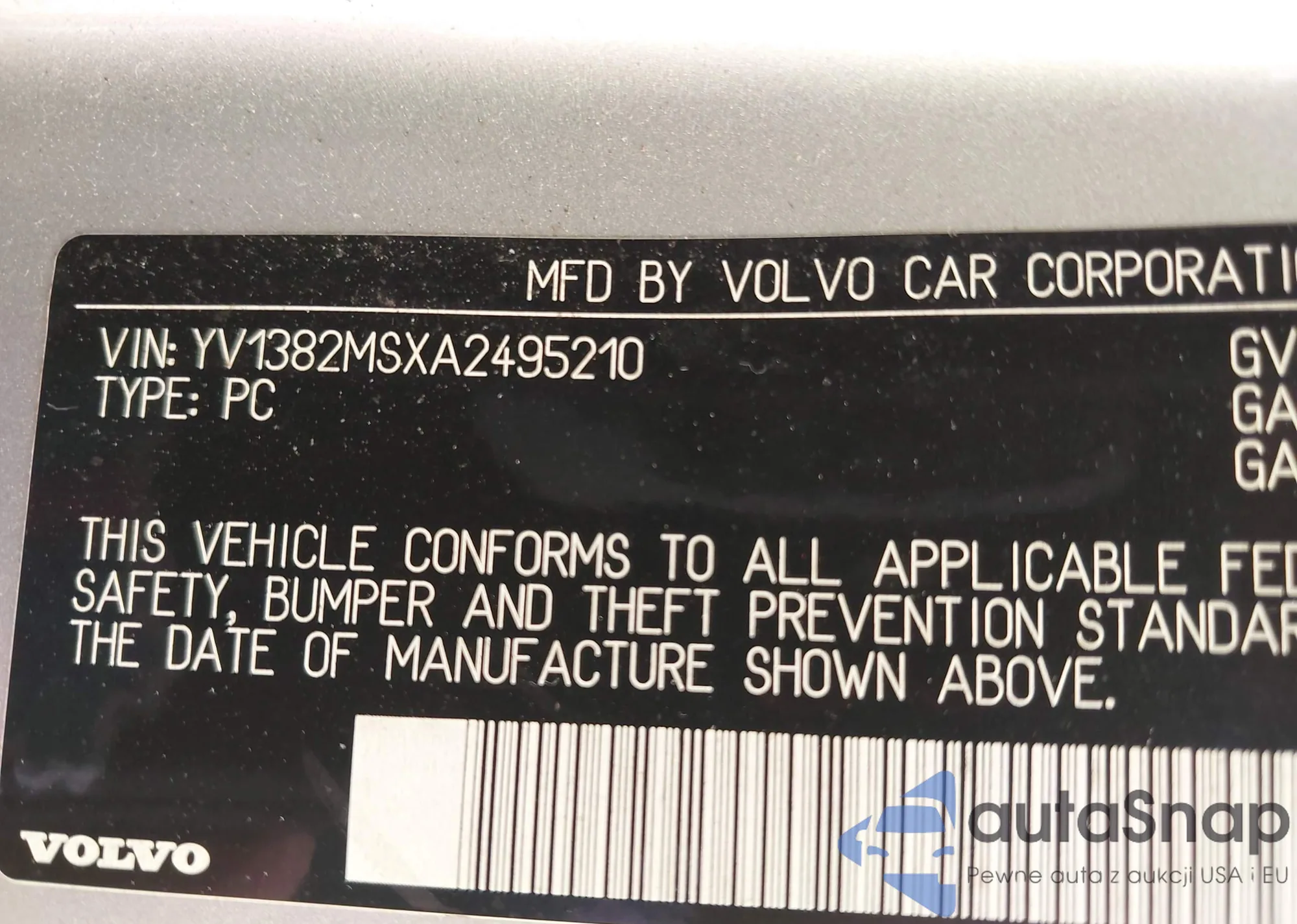 LOT: 42701519 VIN: YV1382MSXA2495210