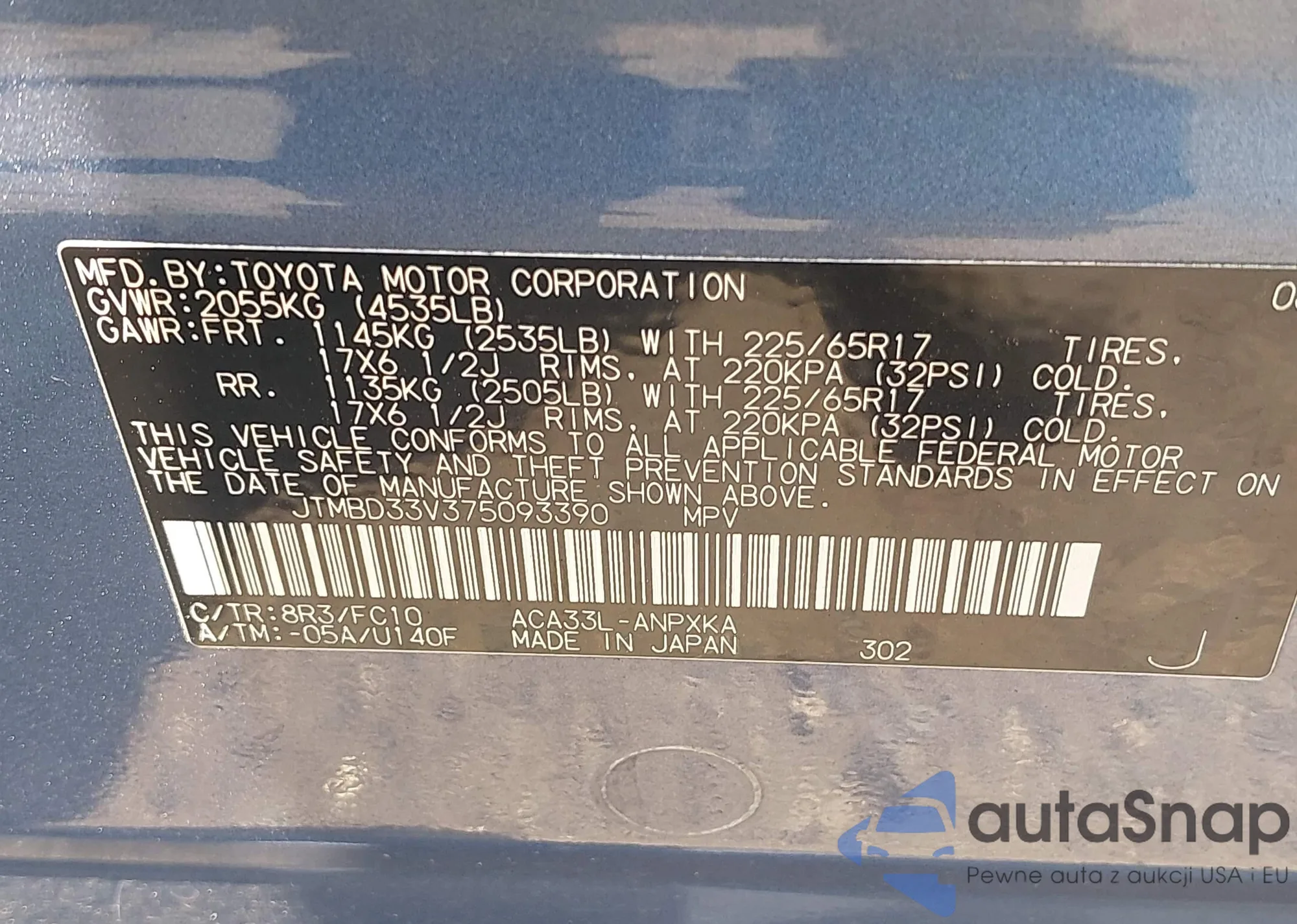 LOT: 42831900 VIN: JTMBD33V375093390