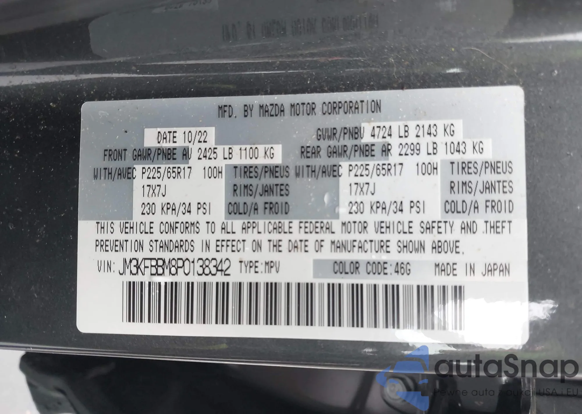 LOT: 42312064 VIN: JM3KFBBM8P0138342