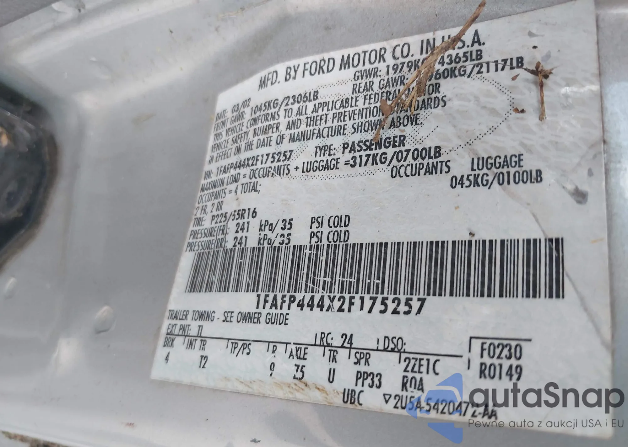 LOT: 42544832 VIN: 1FAFP444X2F175257