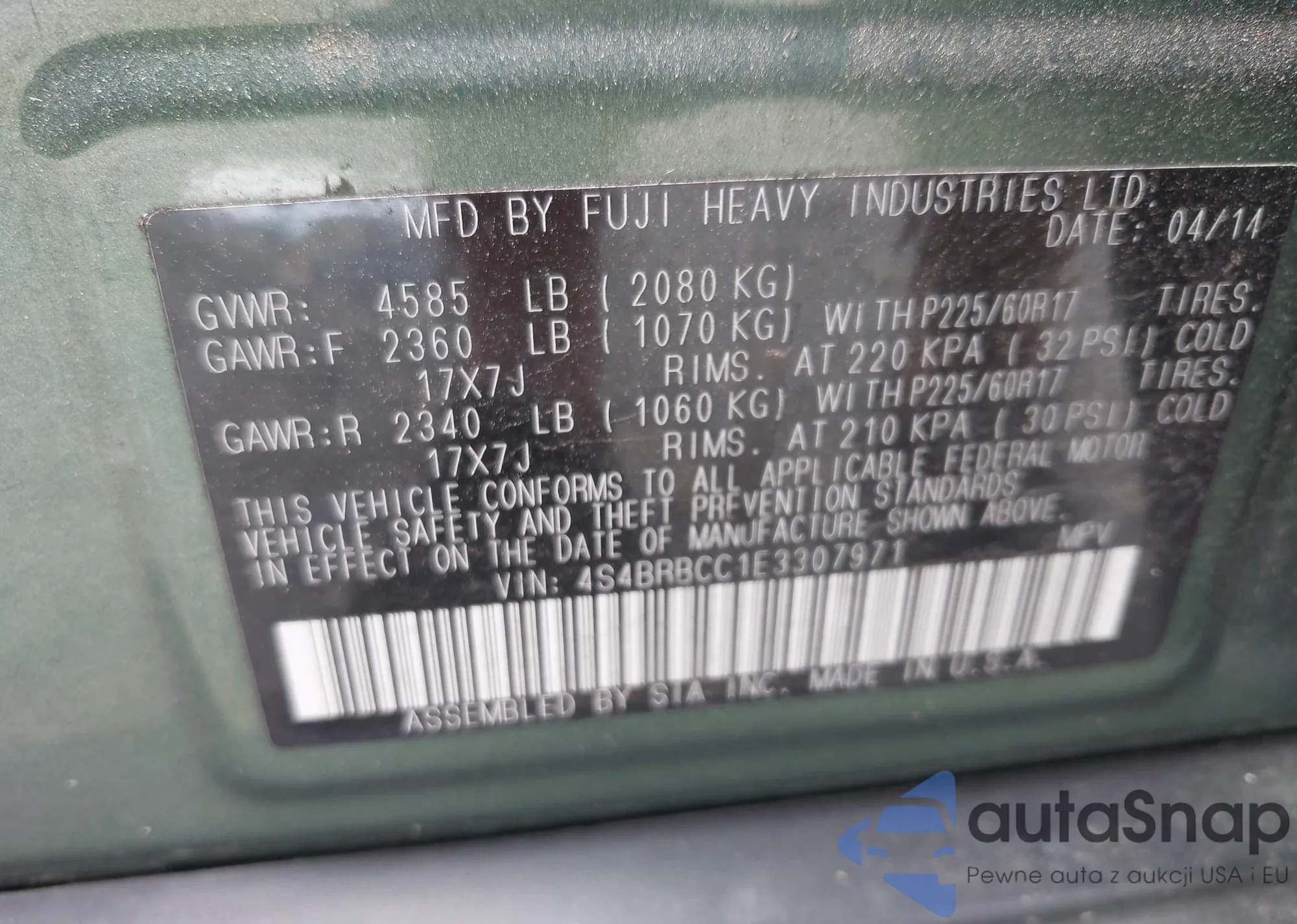 LOT: 42707189 VIN: JF2SJABC3JH460826