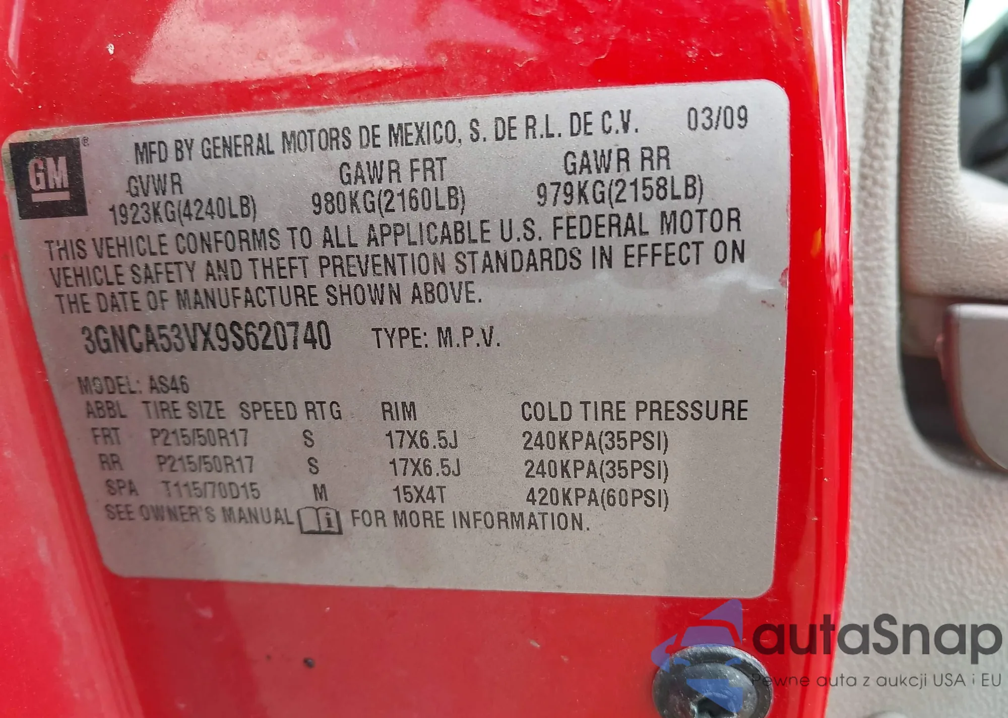 LOT: 42259269 VIN: 3GNCA53VX9S620740