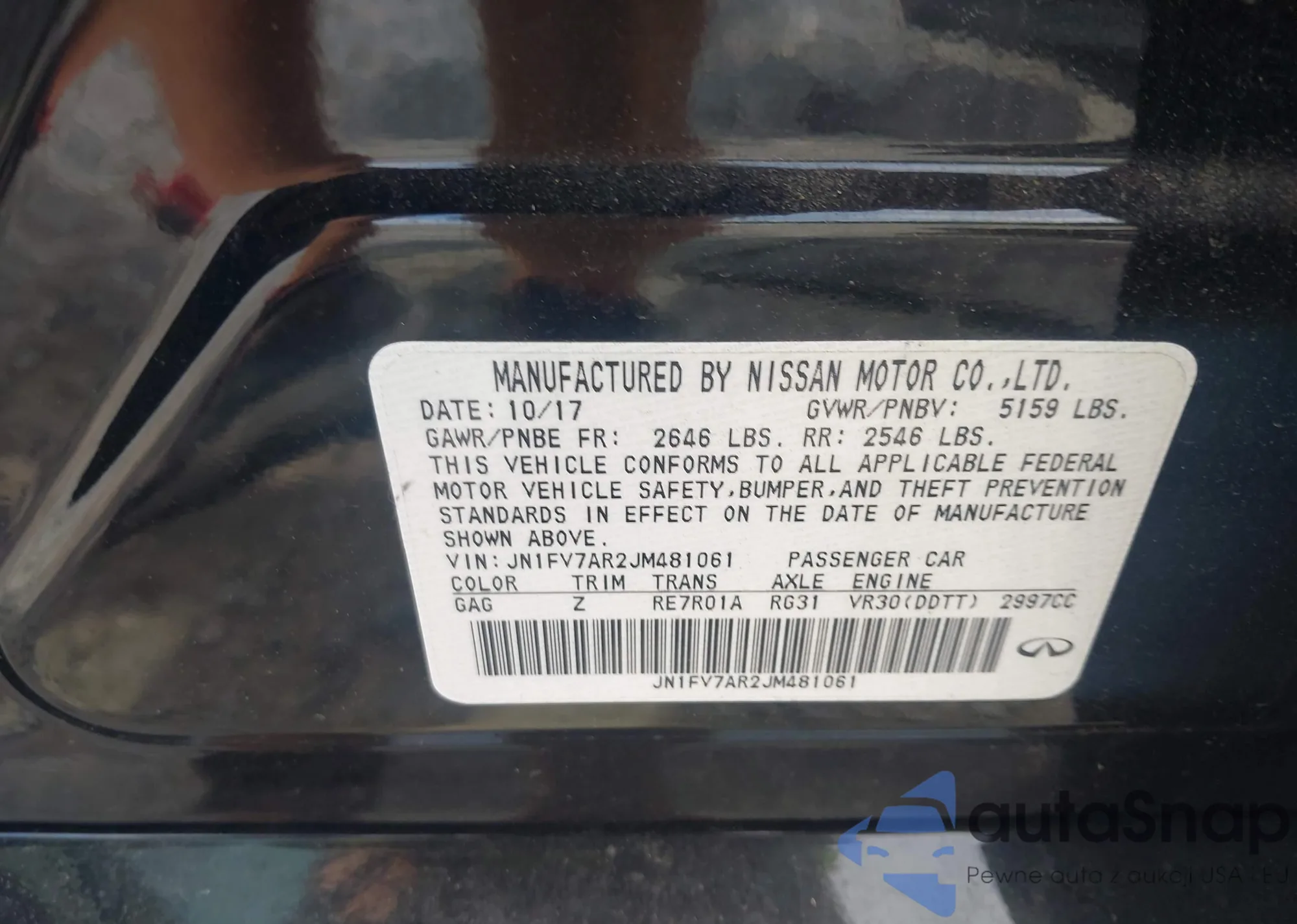 LOT: 42362510 VIN: JN1FV7AR2JM481061
