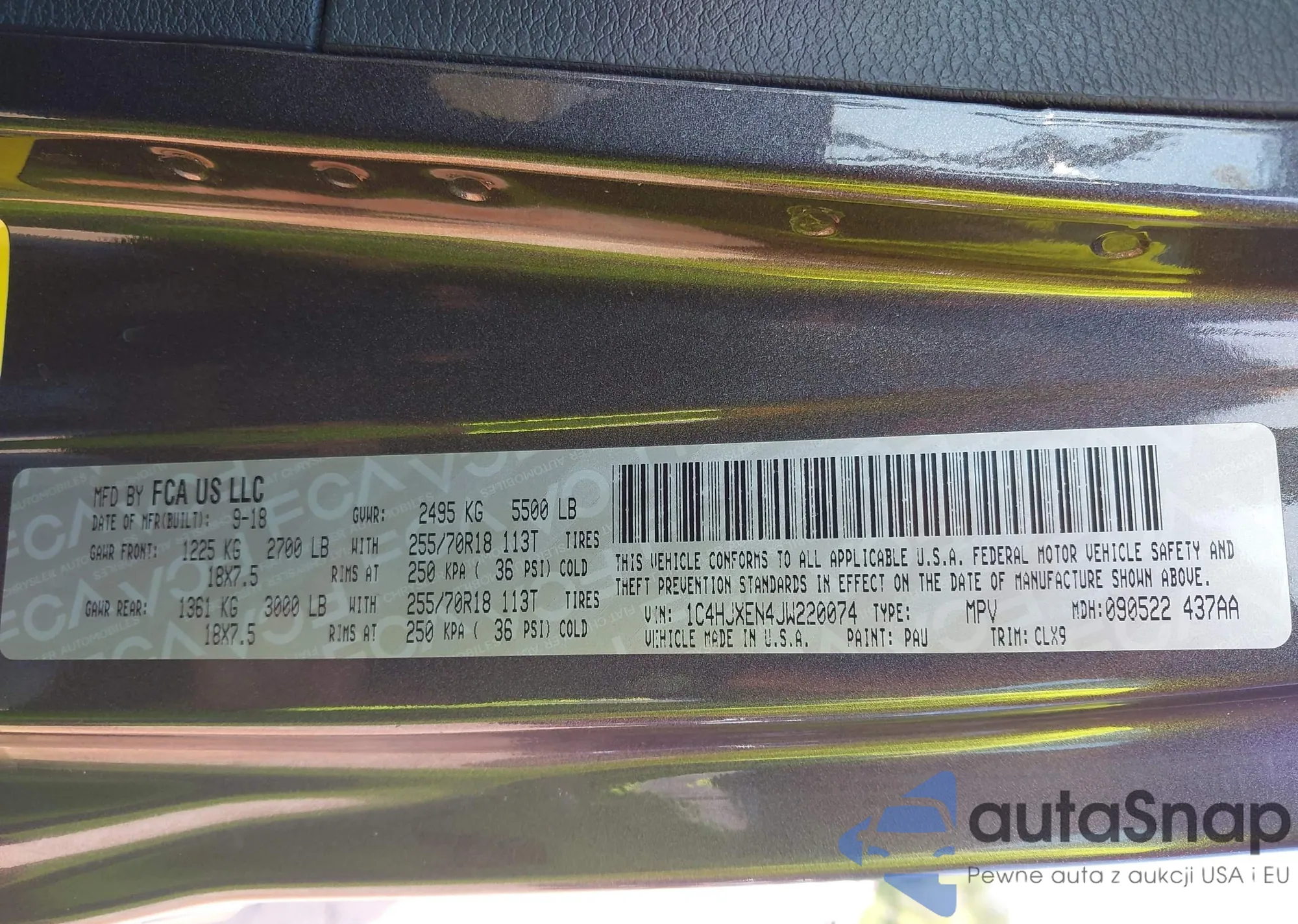 • VIN 1C4HJXEN4JW220074