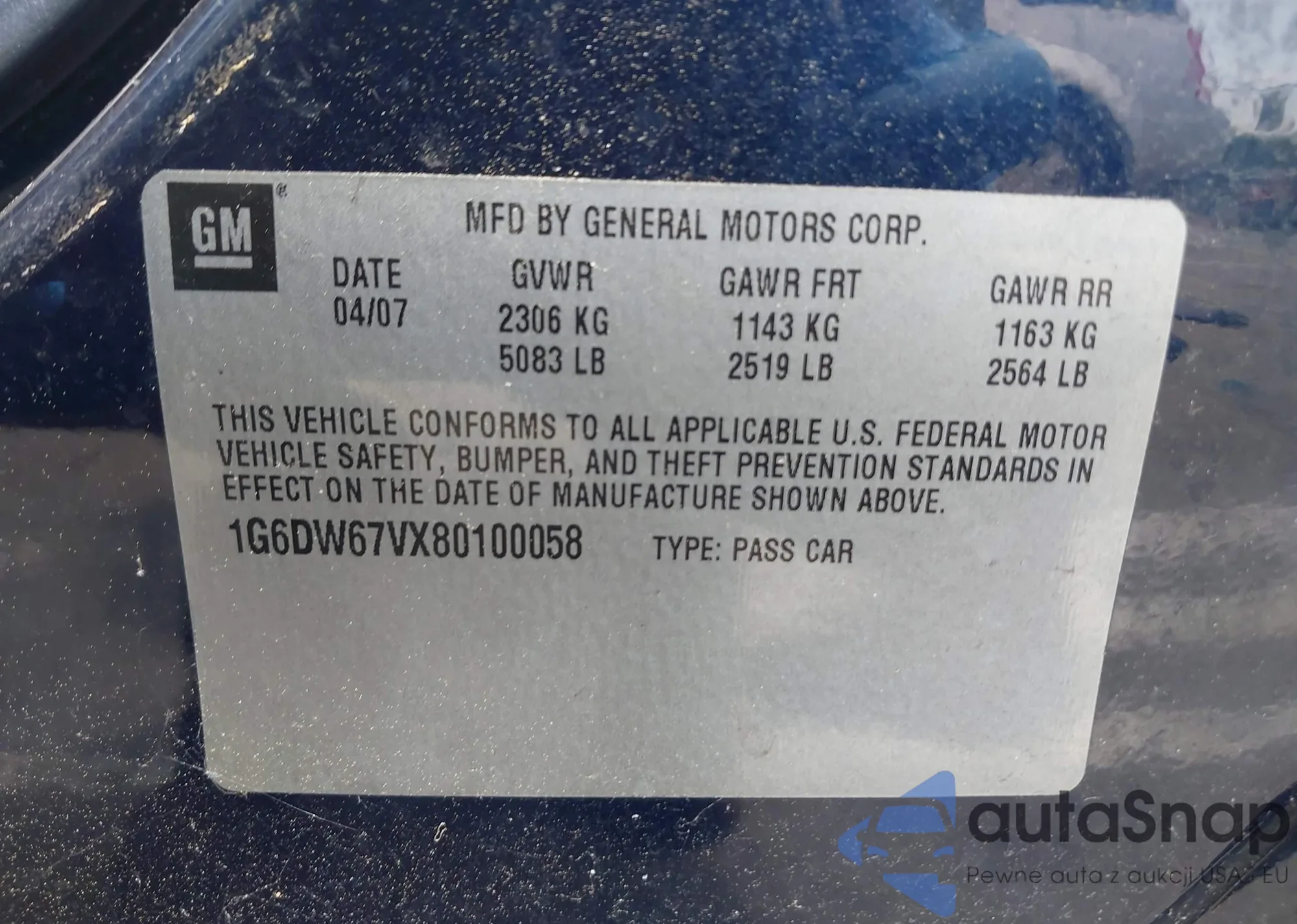 • VIN 1G6DW67VX80100058