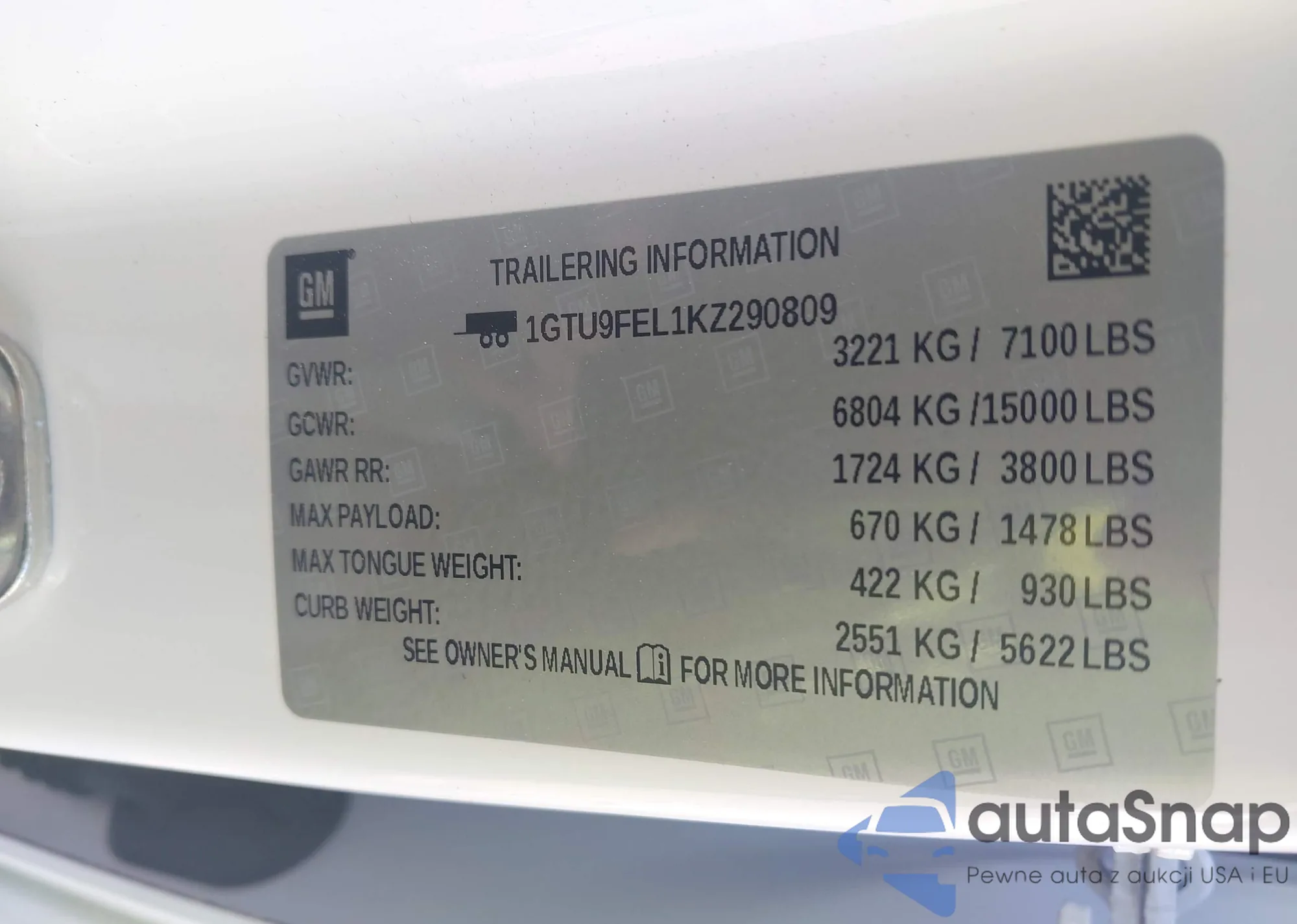 • VIN 1GTU9FEL1KZ290809