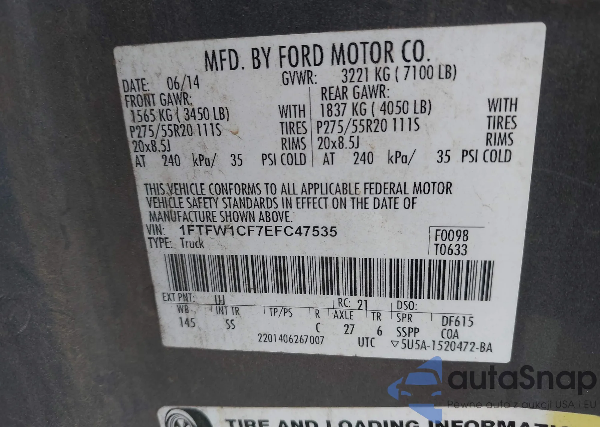 • VIN 3FTNX20L71MA26777