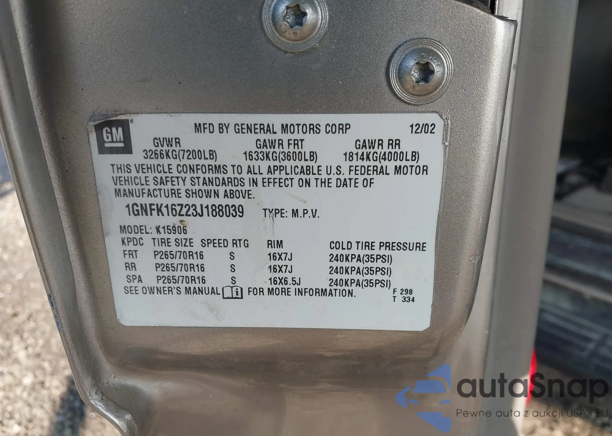 LOT: 42396638 VIN: 1GNFK16Z23J188039