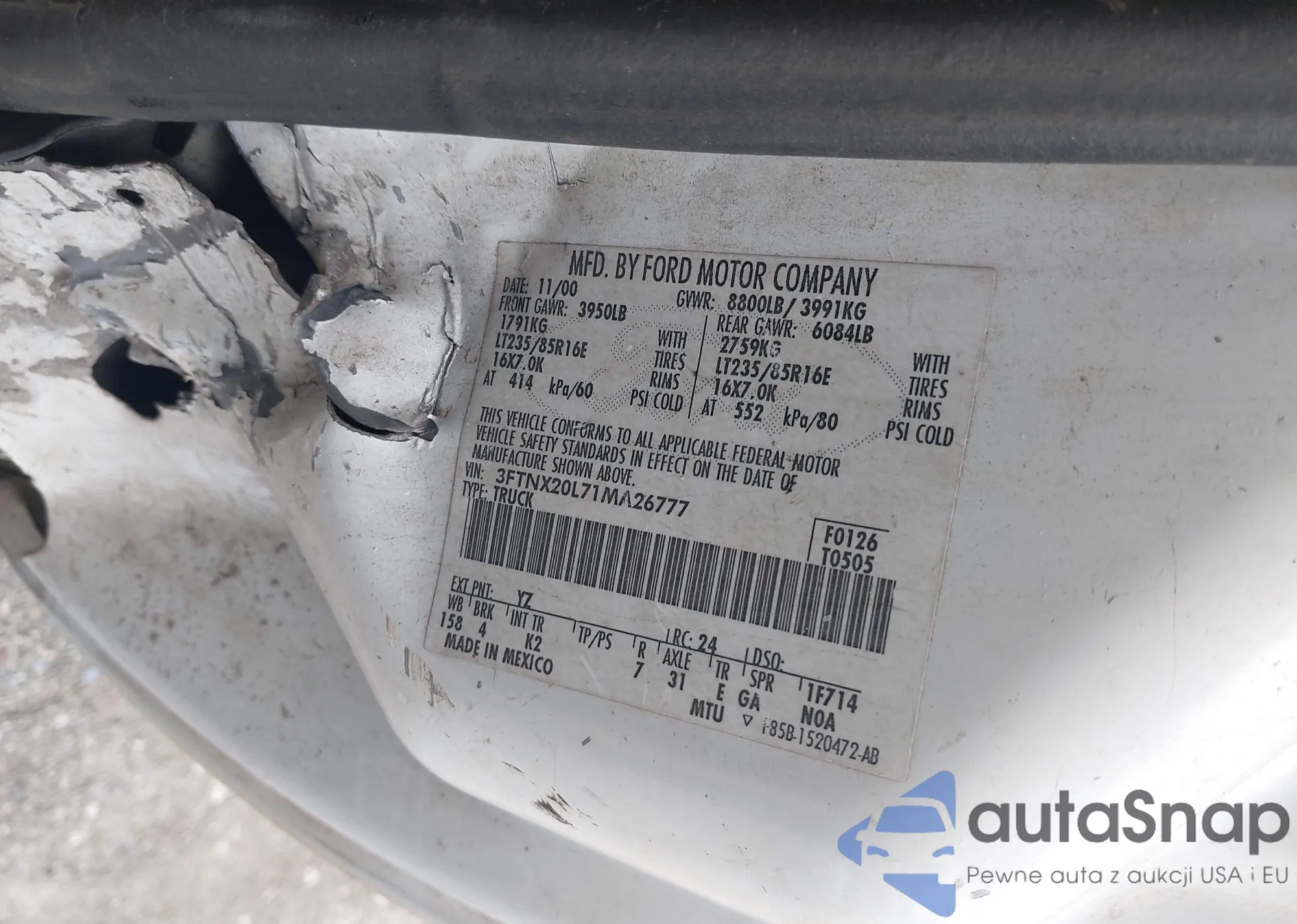 LOT: 42712362 VIN: 3FTNX20L71MA26777