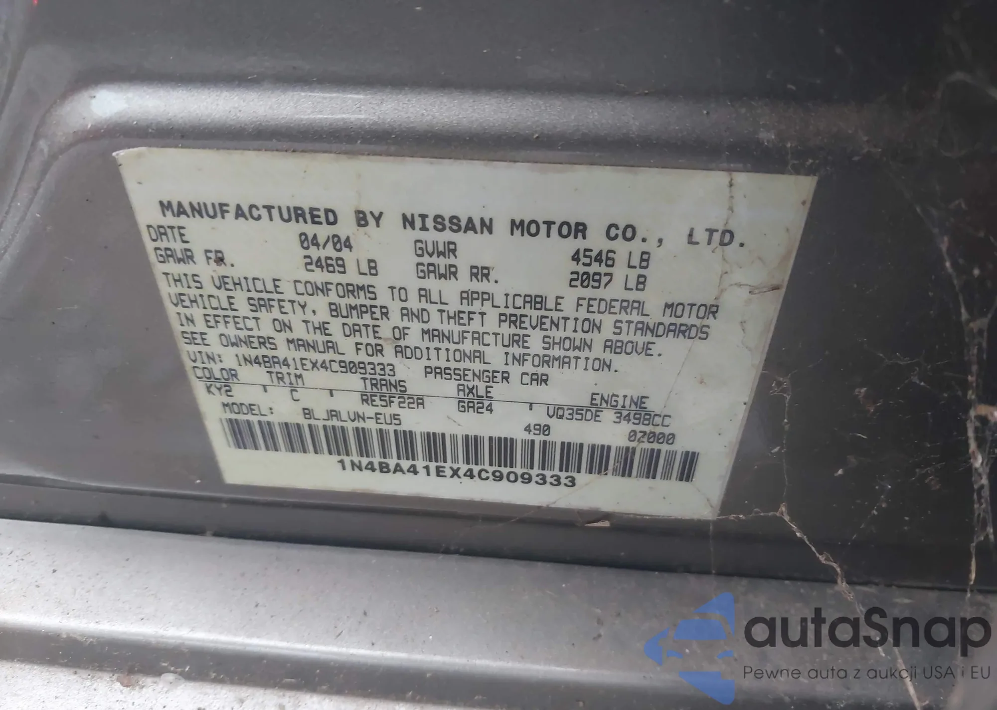 • VIN 1N4BA41EX4C909333