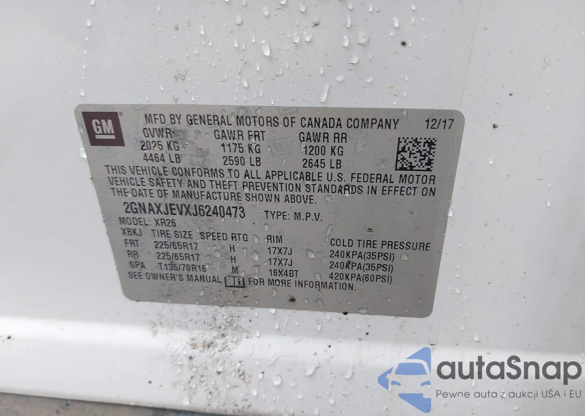 LOT: 42452257 VIN: 2GNAXJEVXJ6240473