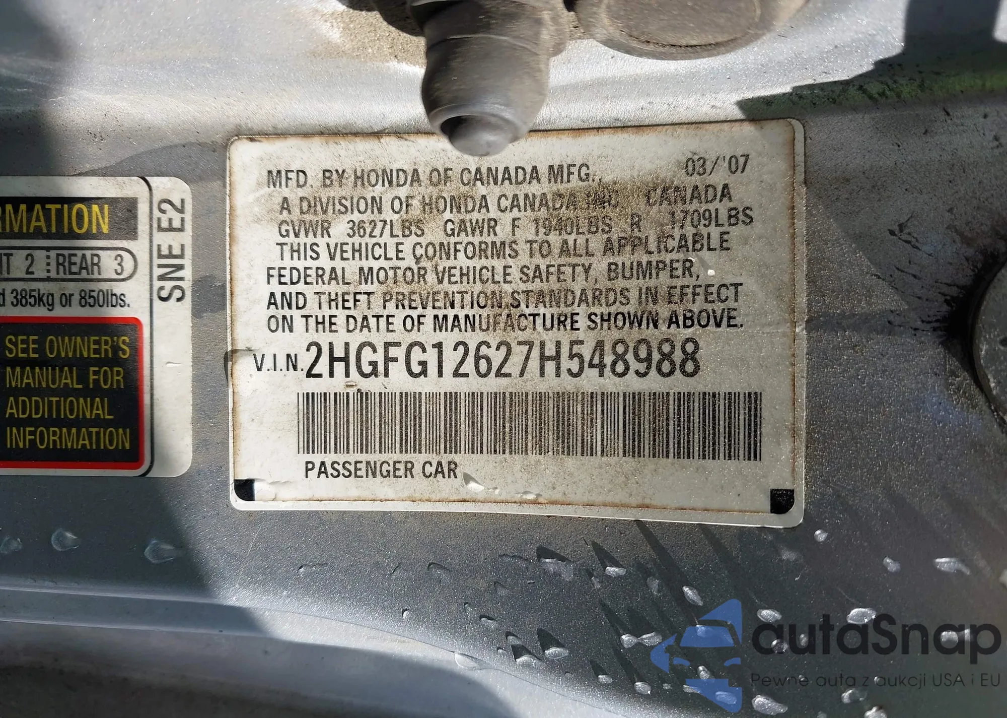 • VIN 2HGFG12627H548988