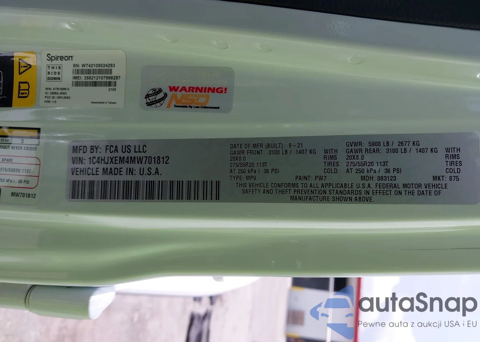 • VIN 1C4HJXEM4MW701812