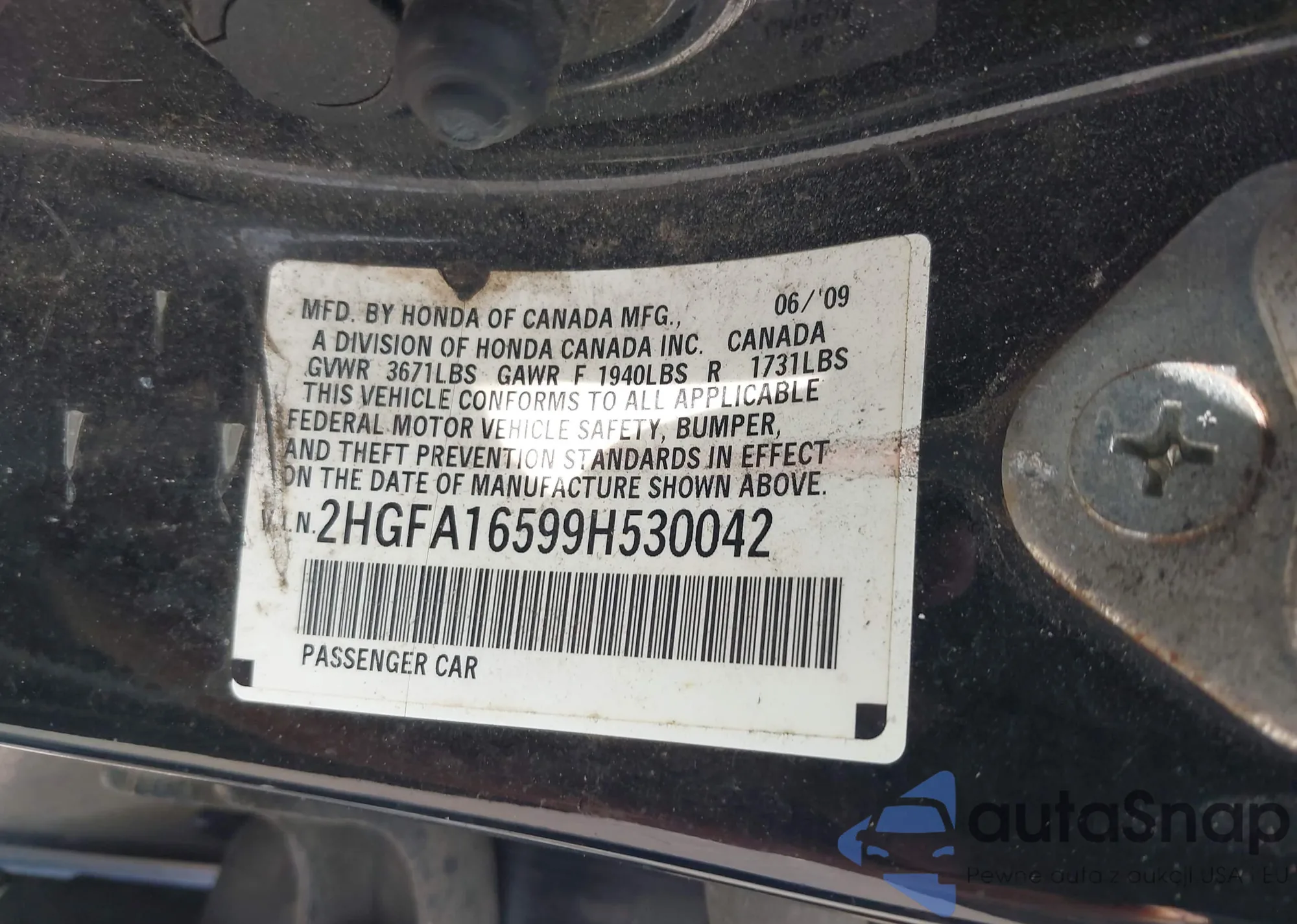 LOT: 42635701 VIN: 2HGFA16599H530042
