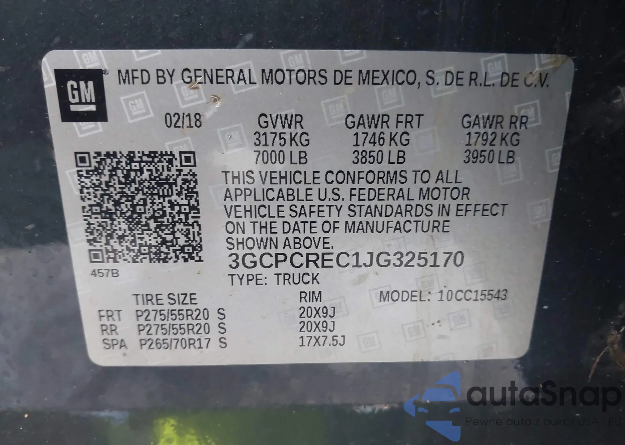 • VIN 3GCPCREC1JG325170