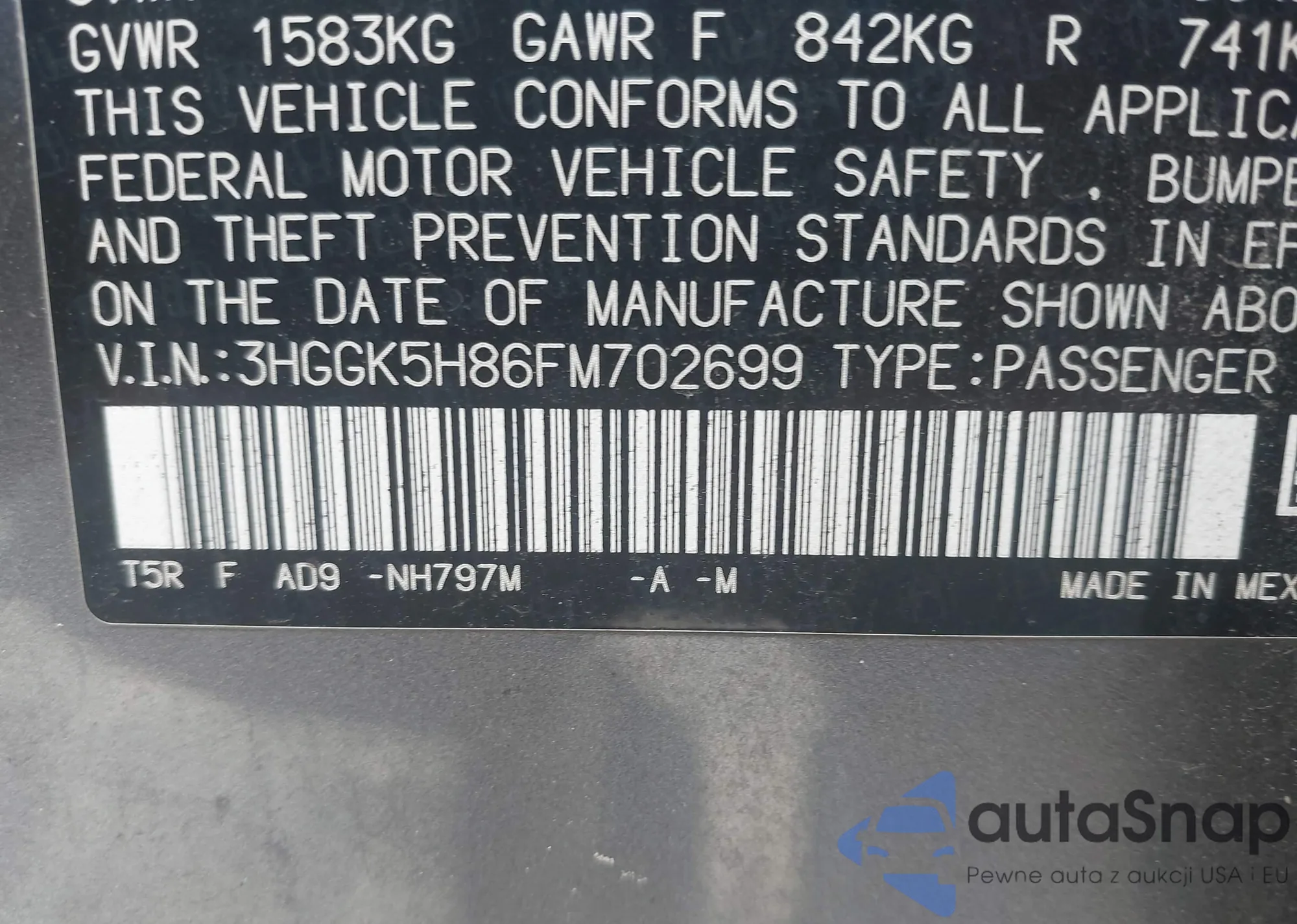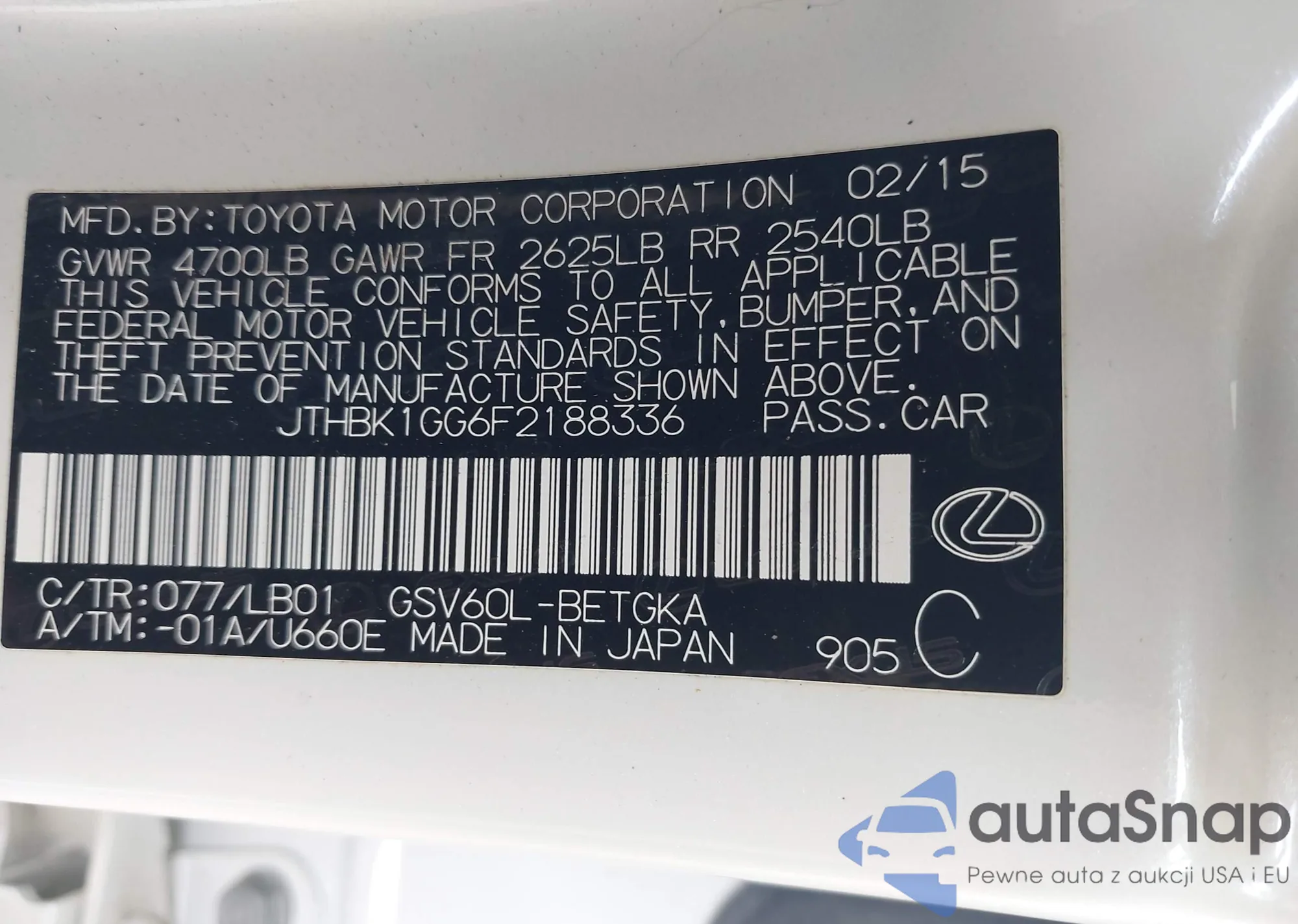 LOT: 42824044 VIN: 19XFB2F50CE326735