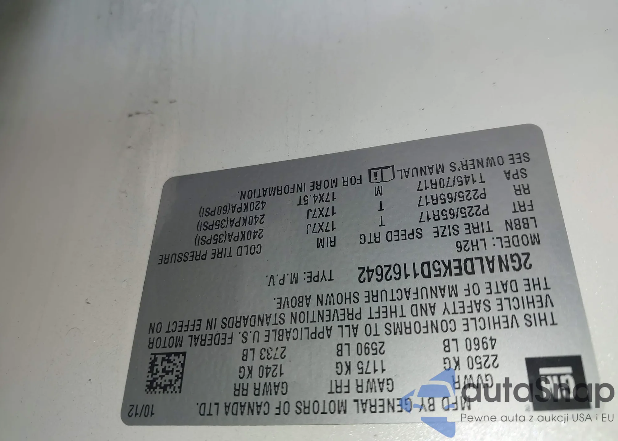 LOT: 42561817 VIN: 2GNALDEK5D1162642