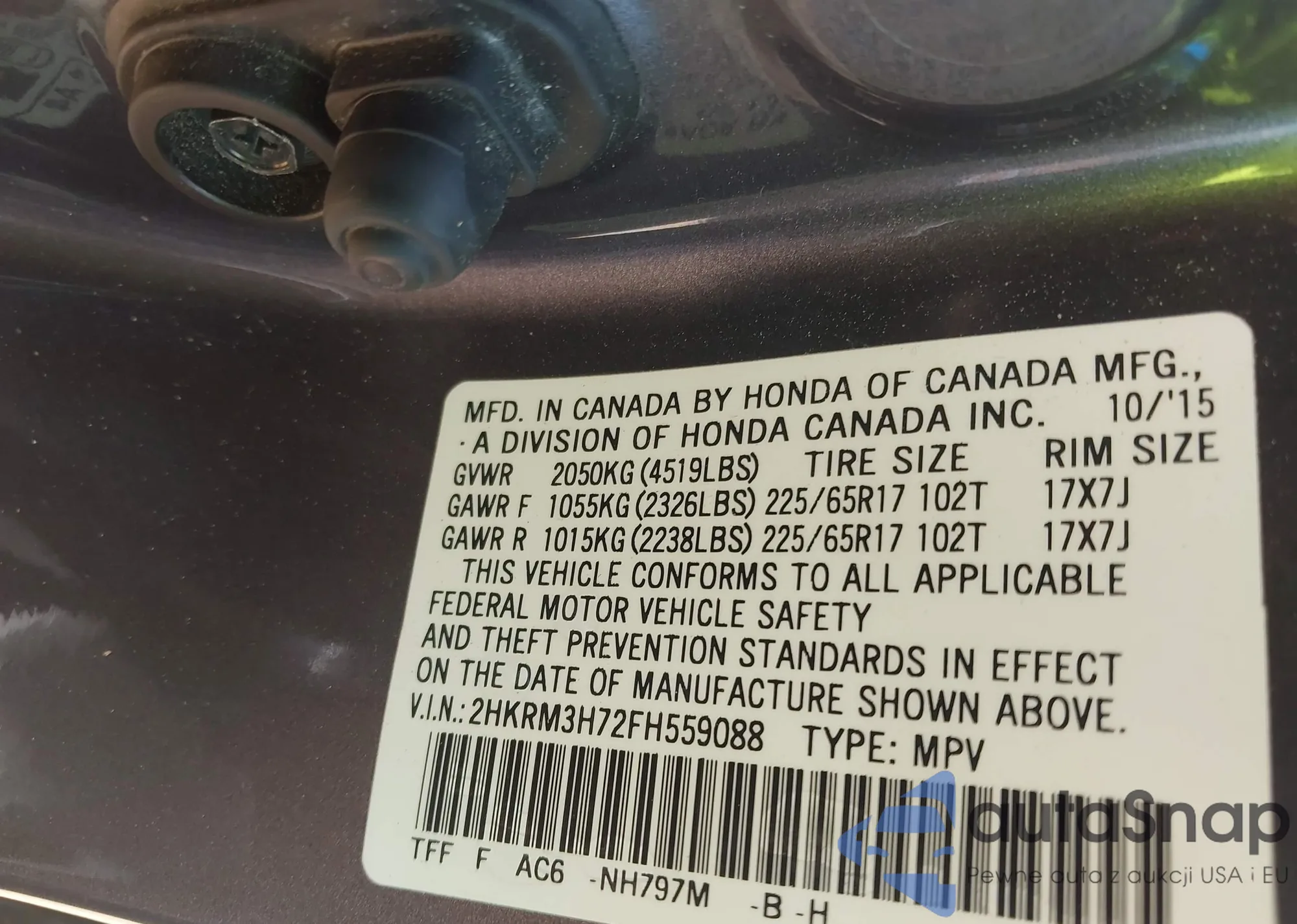2015 Honda Cr-V Ex-L from USA, damaged, VIN 2HKRM3H72FH559088