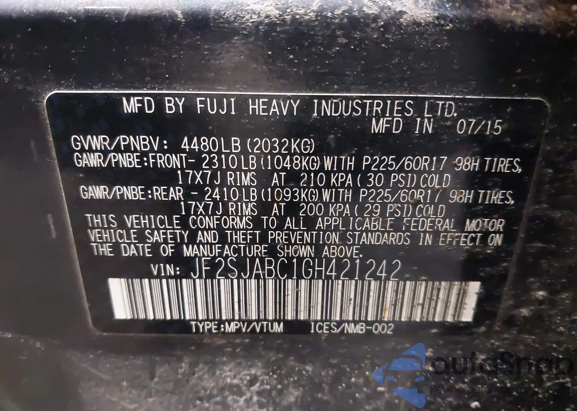 • VIN 4S3BWAH65M3011148