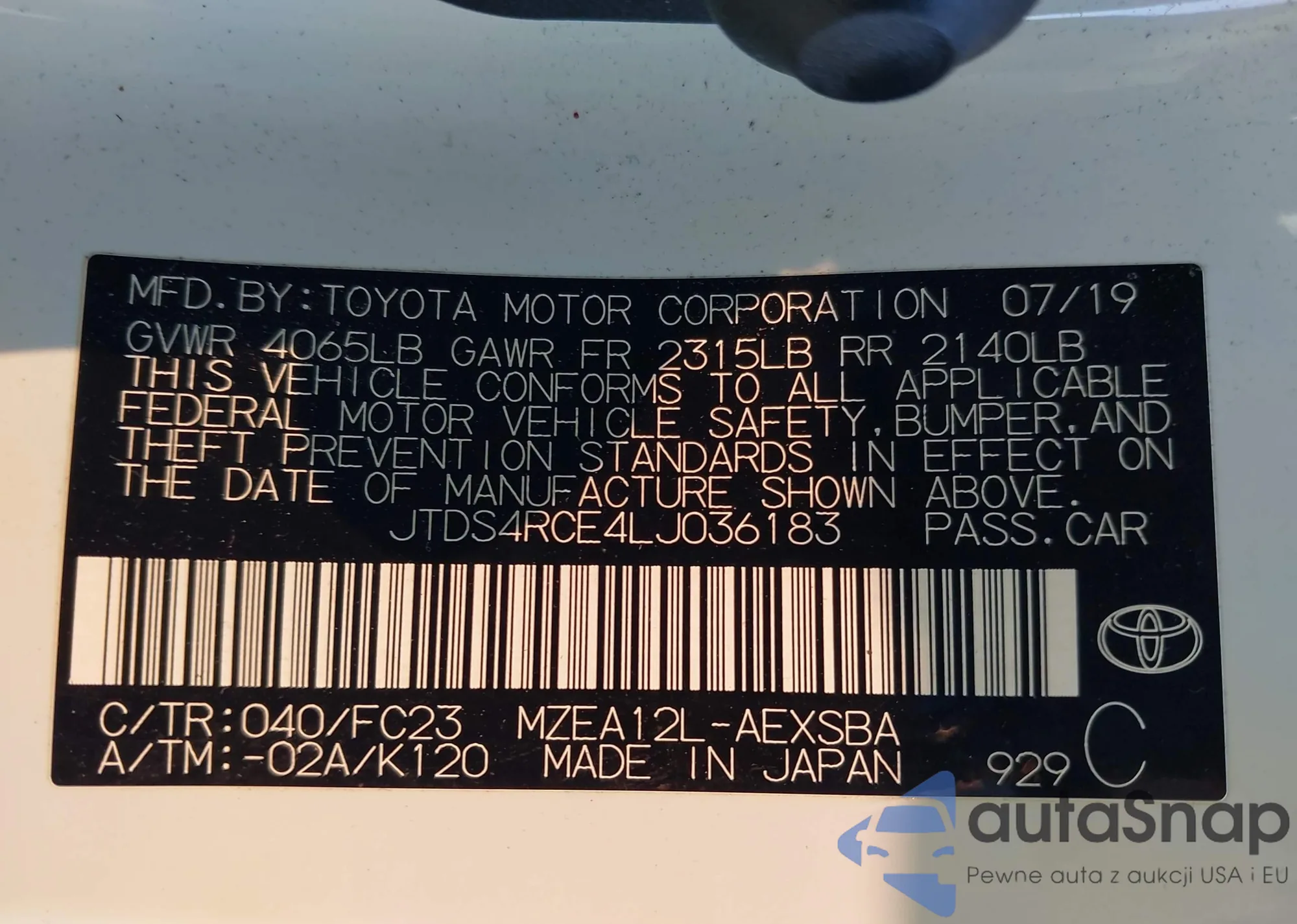 LOT: 42135424 VIN: JTDS4RCE4LJ036183