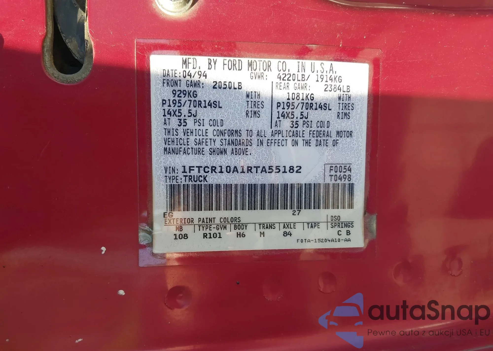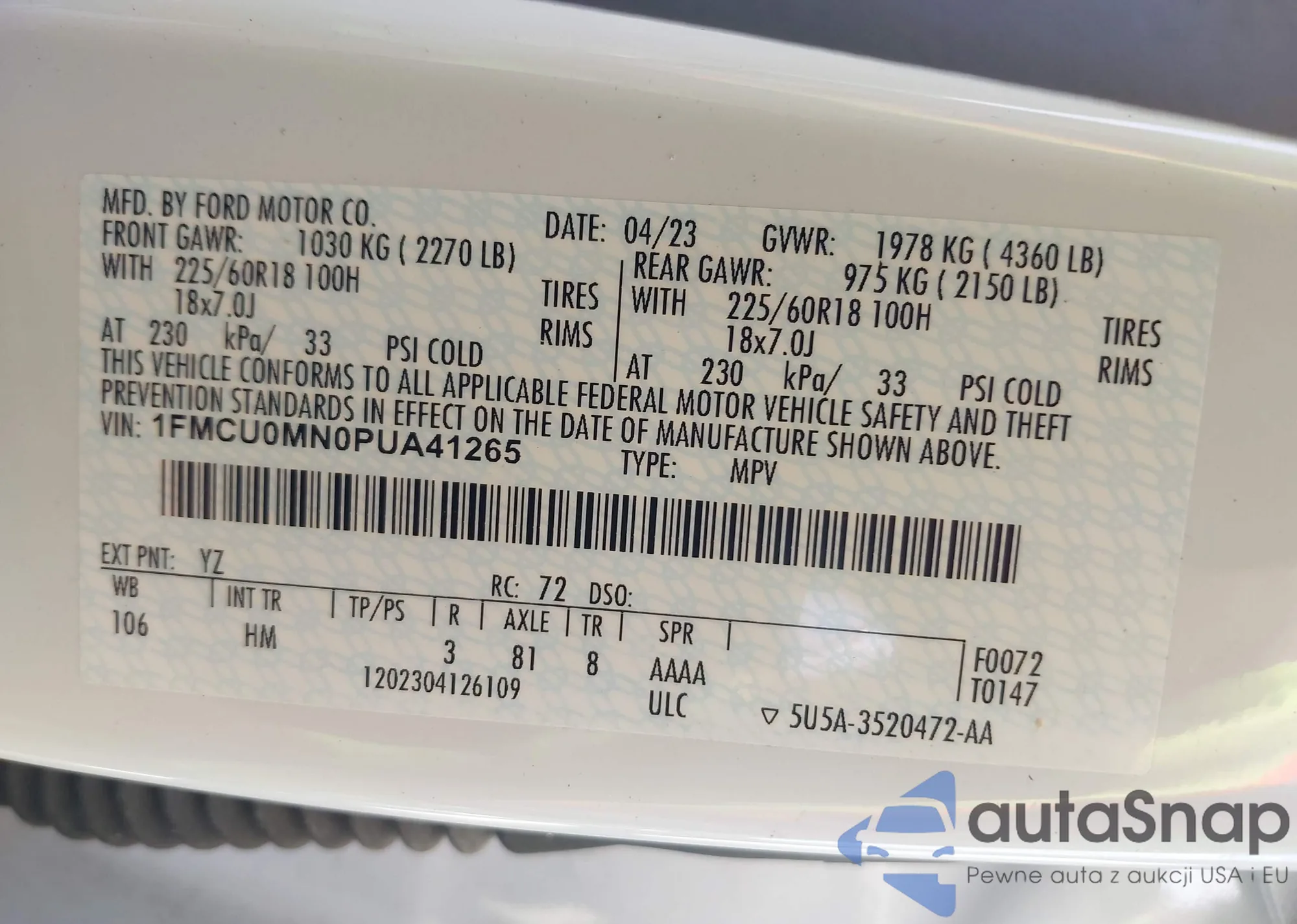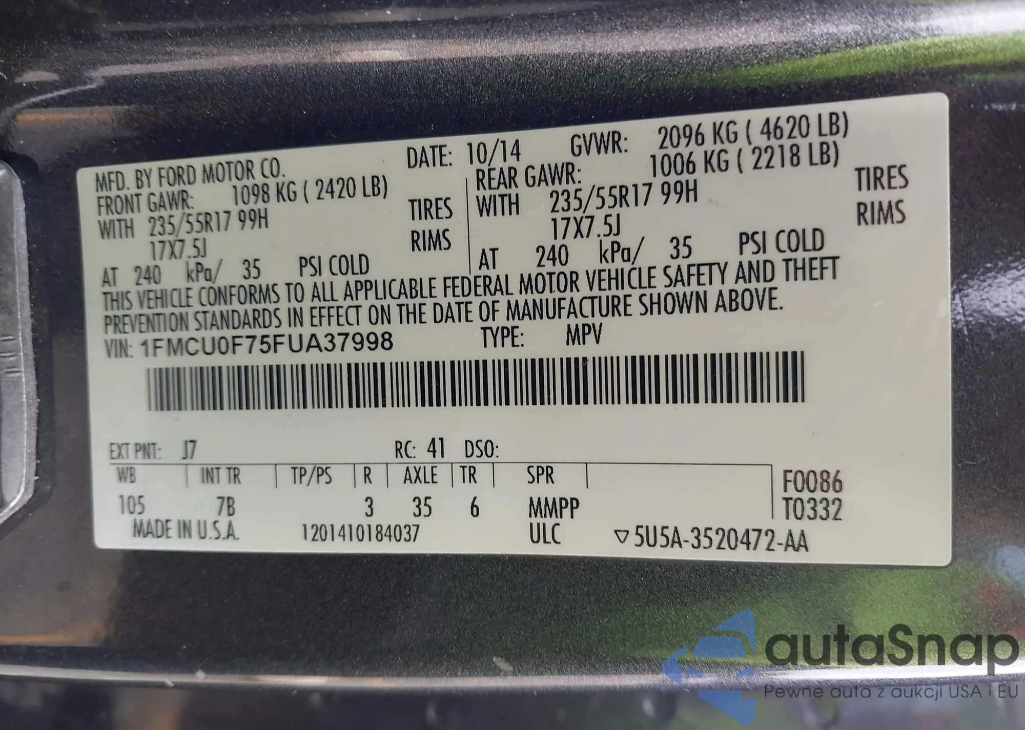LOT: 42370100 VIN: 1FMCU0F75FUA37998