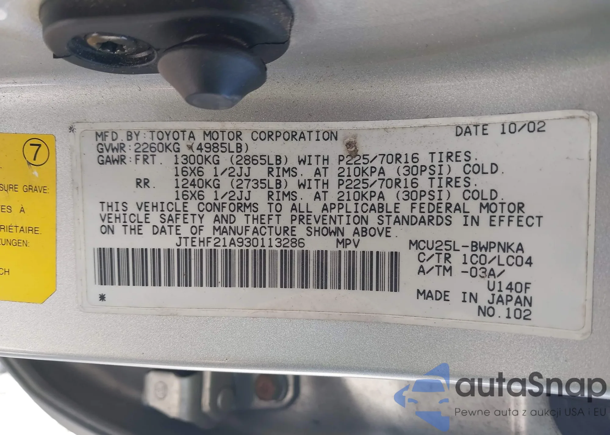 LOT: 42847219 VIN: JTDBR32E060069093