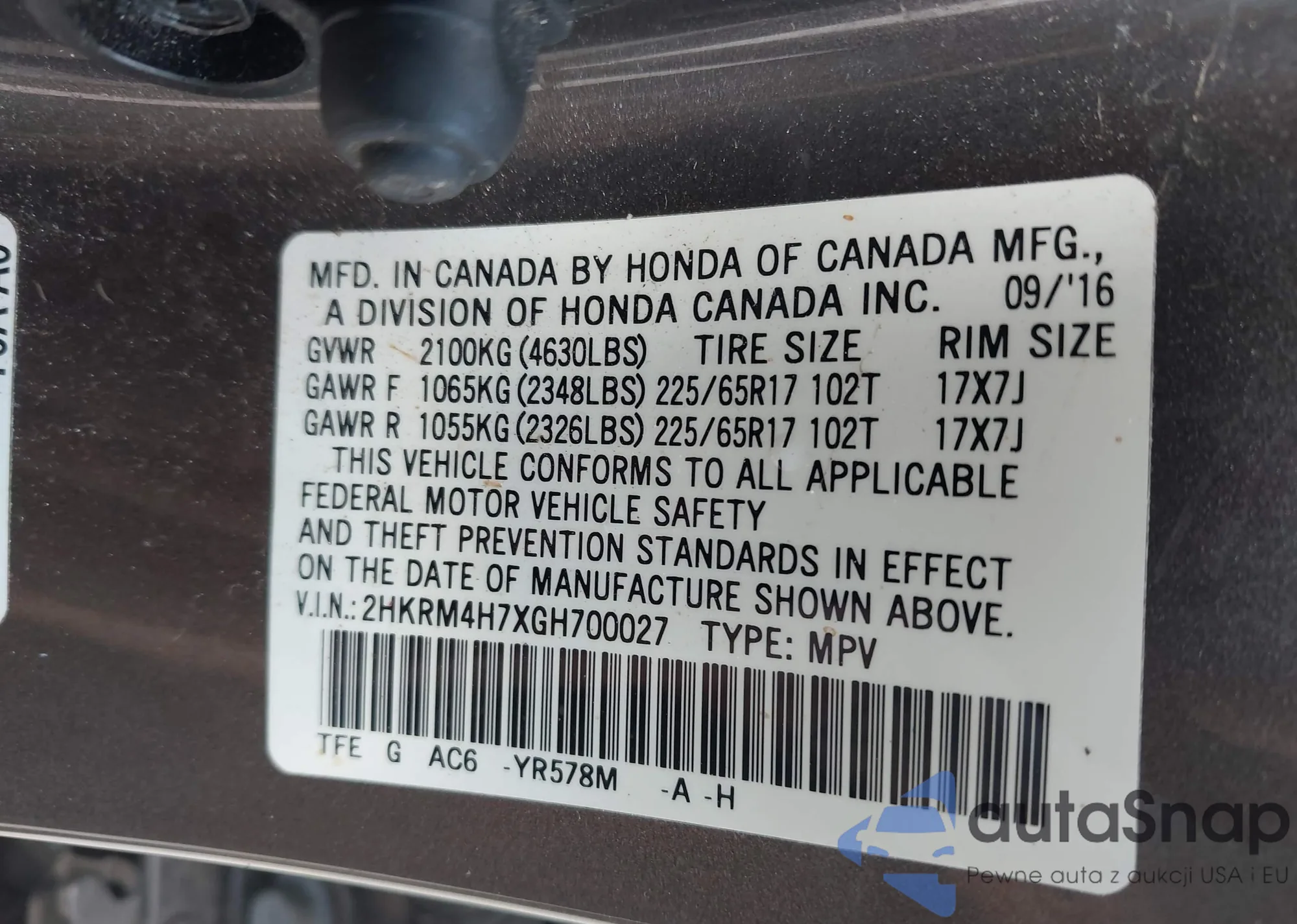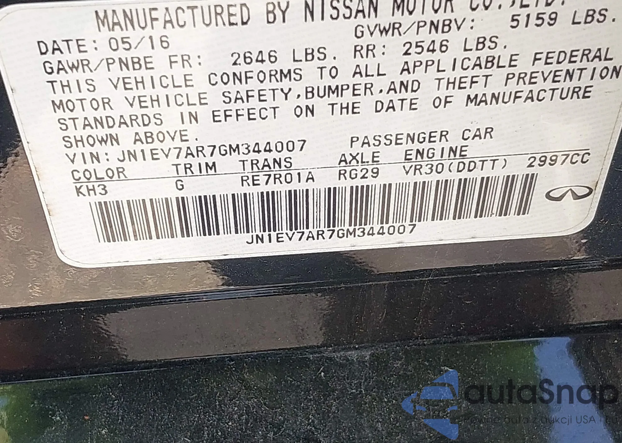 LOT: 42611884 VIN: JN1EV7AR7GM344007