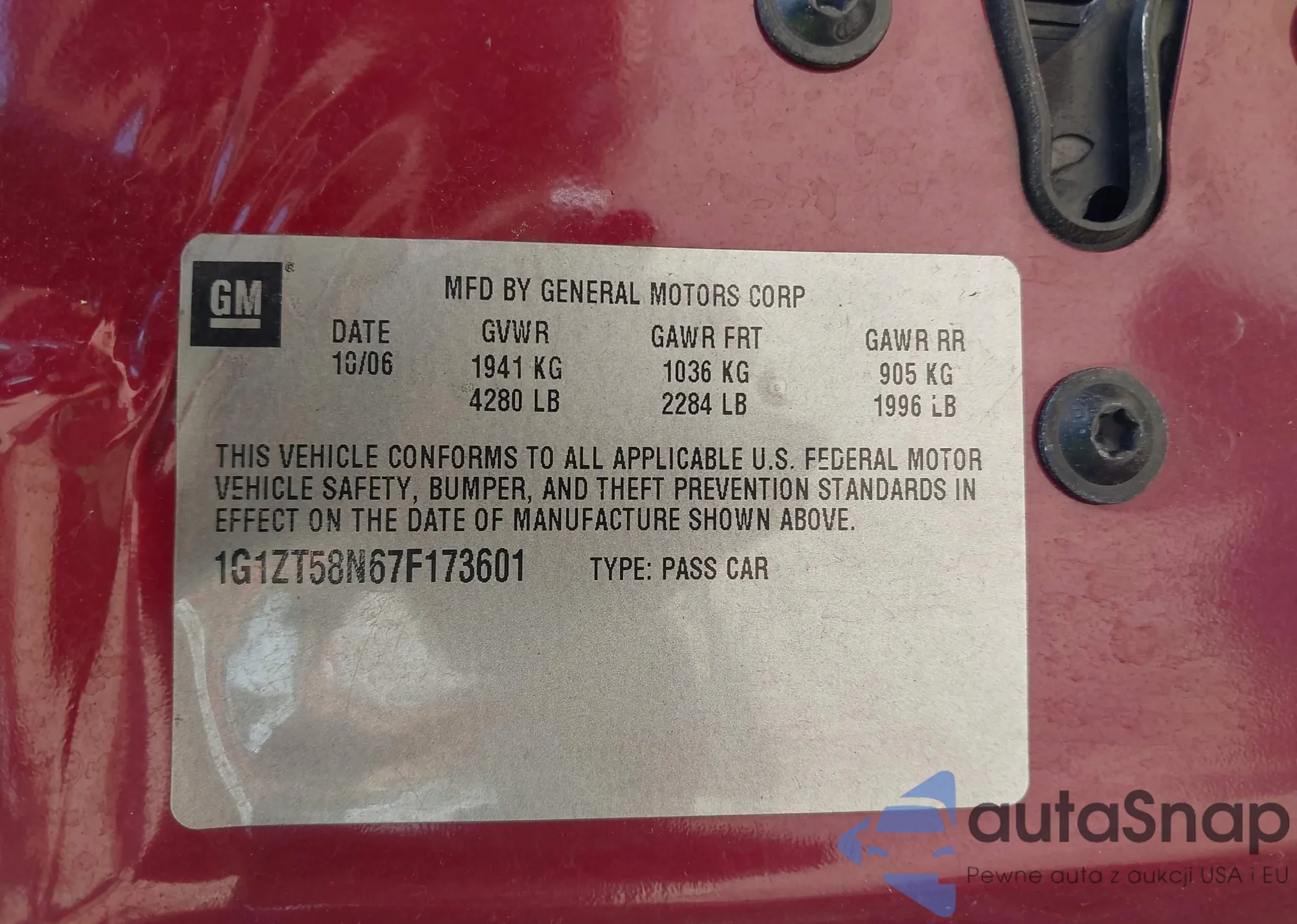 • VIN 1G1ZT58N67F173601