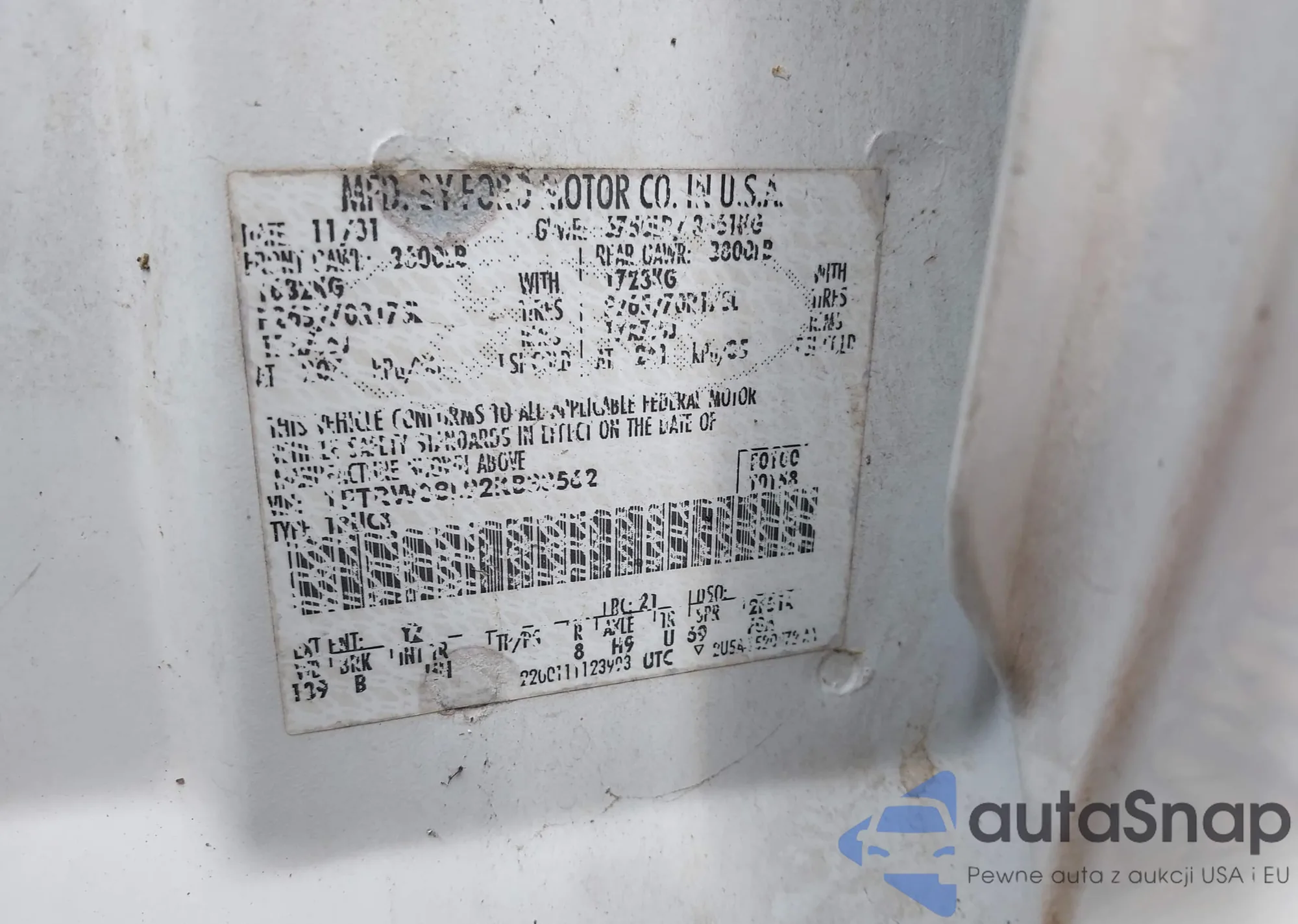 LOT: 42762931 VIN: 1FTRW08L92KB33562