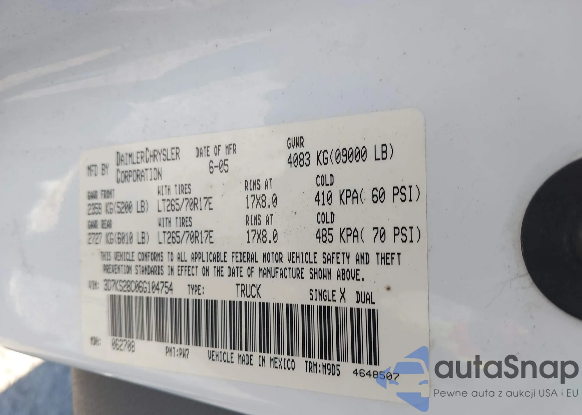 • VIN 3D7KS28C06G104754