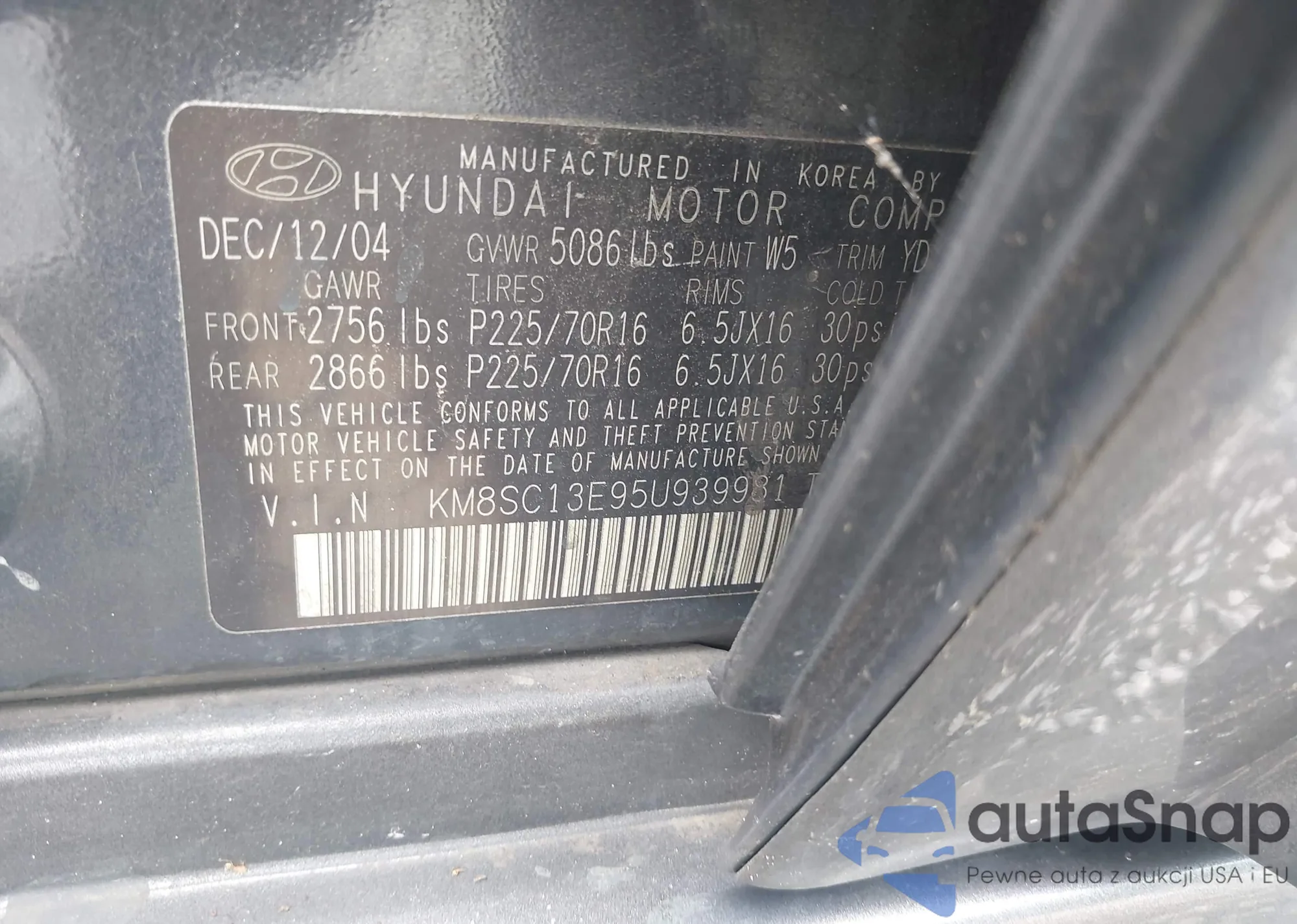LOT: 42852455 VIN: KM8SC13E95U939981