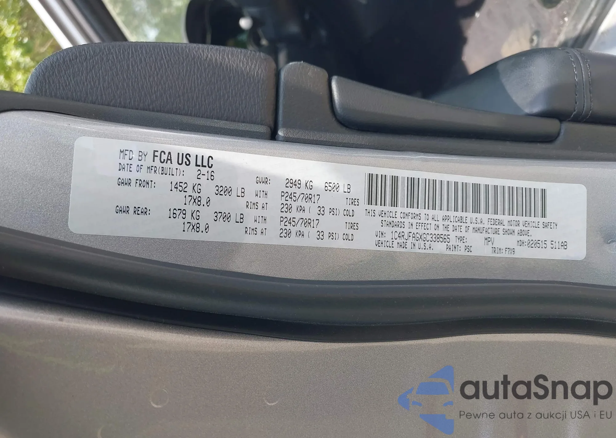 • VIN 1C4RJFAGXGC338565