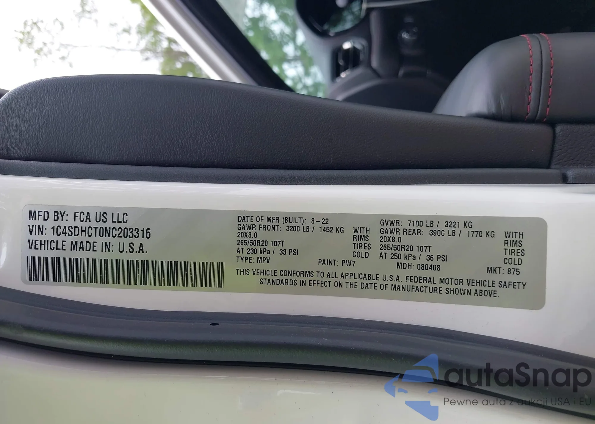 LOT: 42505385 VIN: 1C4SDHCT0NC203316