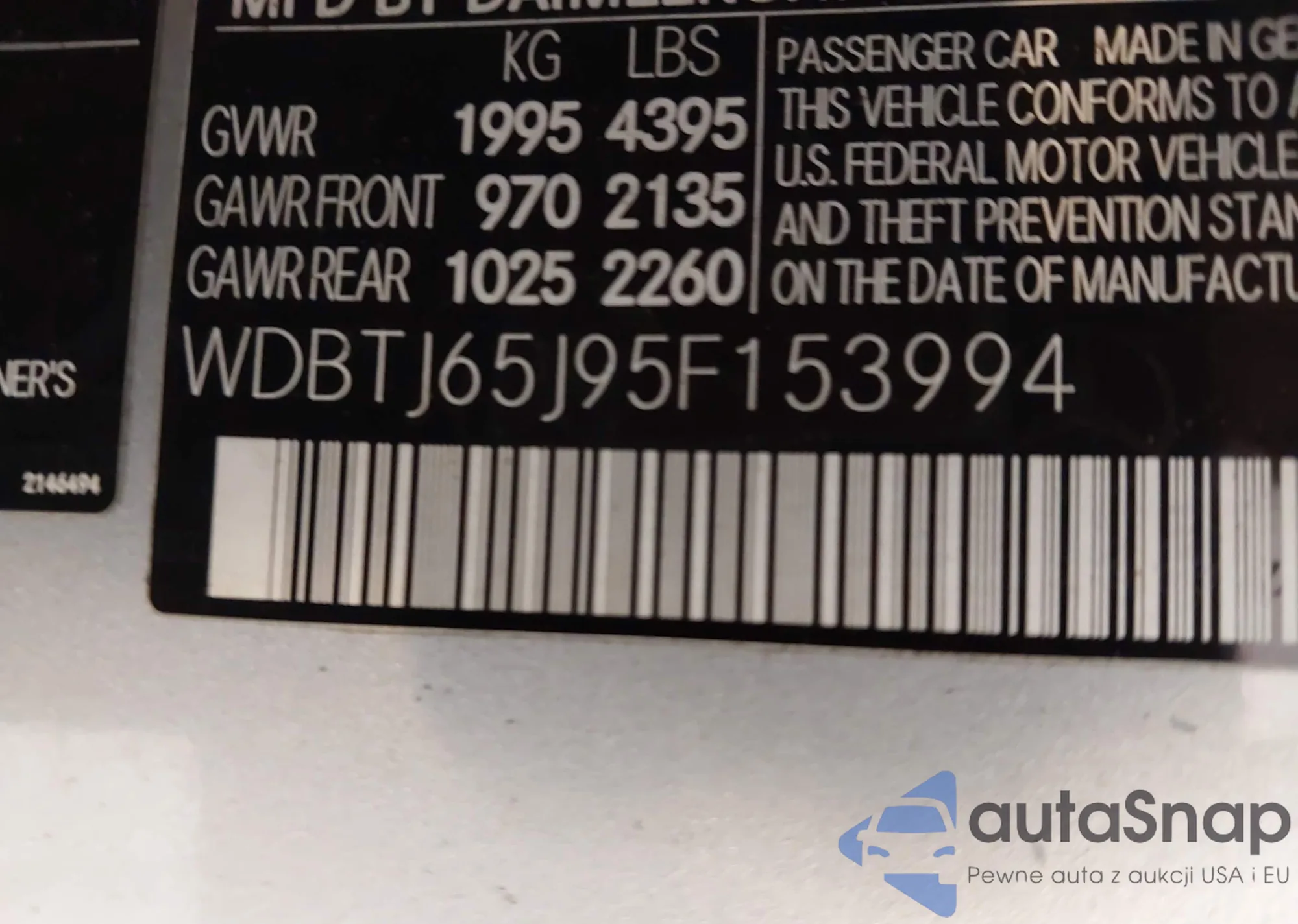 • VIN WDBTJ65J95F153994