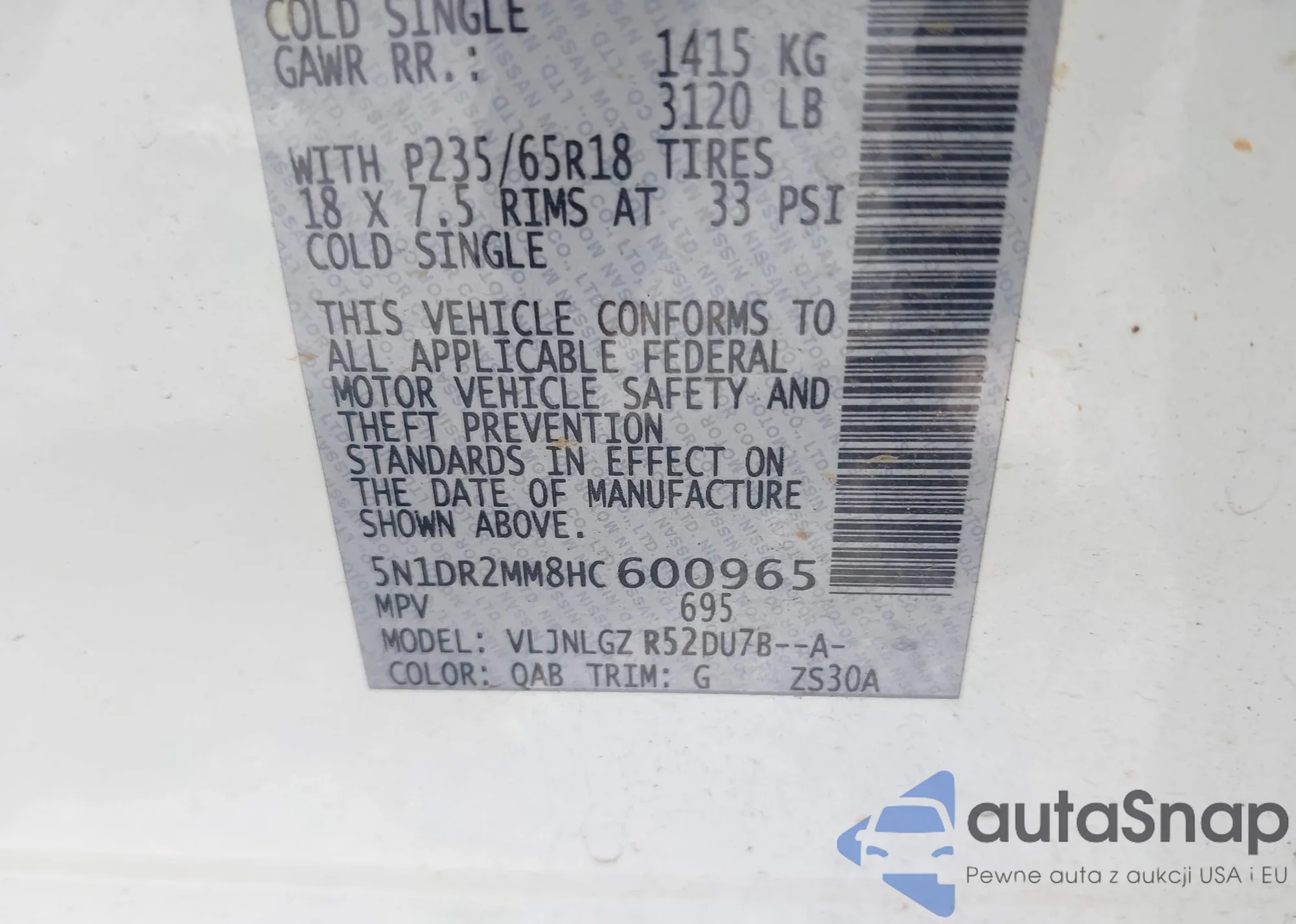 • VIN 5N1DR2MM8HC600965