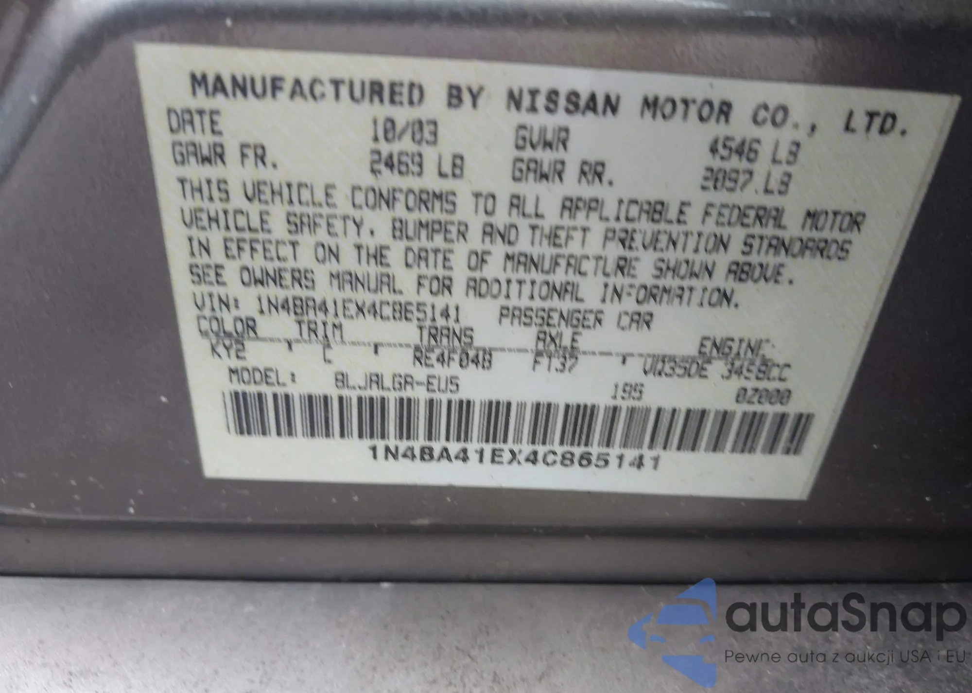 LOT: 42768546 VIN: 1NXBU4EE4AZ215654