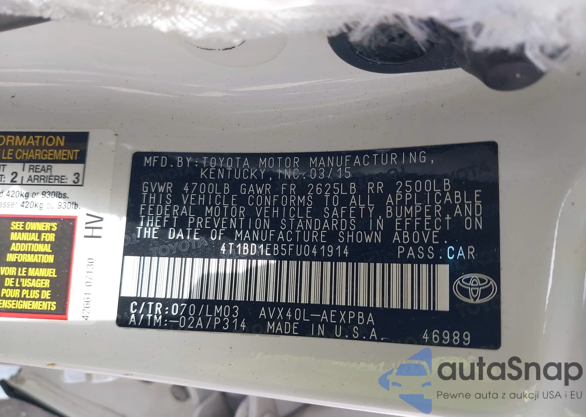 • VIN 1C4AJWAG1FL652522