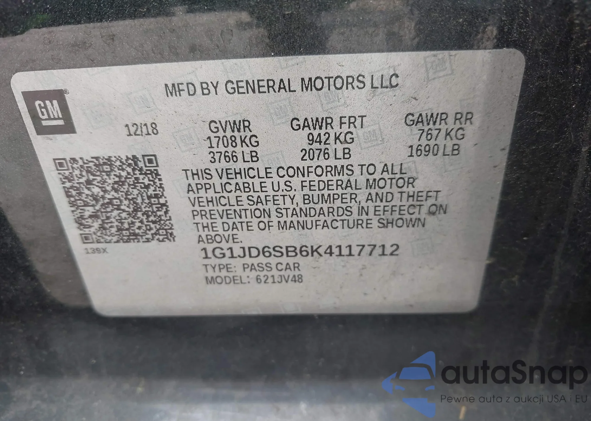 • VIN 1G1JD6SB6K4117712